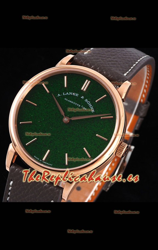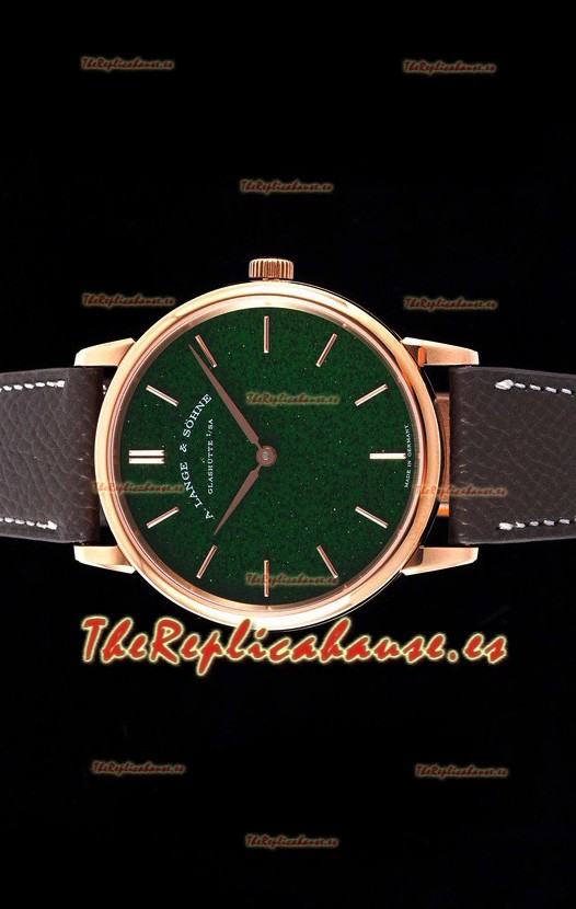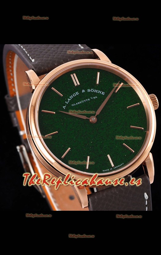 A.Lange & Sohne Saxonia Thin Reloj Réplica Suizo Caja en Oro Rosado Dial Verde Estrellada