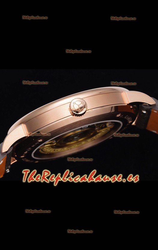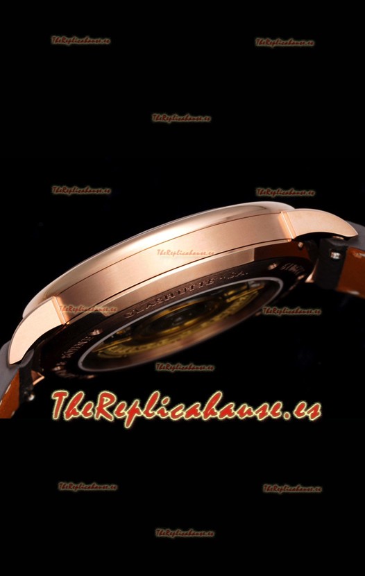 Caja de Acero Inoxidable Solido pulido 904 chapada en Oro Rosado 18K con Cubierta trasera de la Caja en Acero. Bisel Pulido.