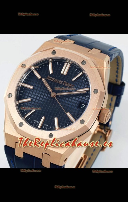 Audemars Piguet Royal Oak 15510OR 41MM Oro Rosado Dial Dorado Azul Super Clone Reloj Réplica