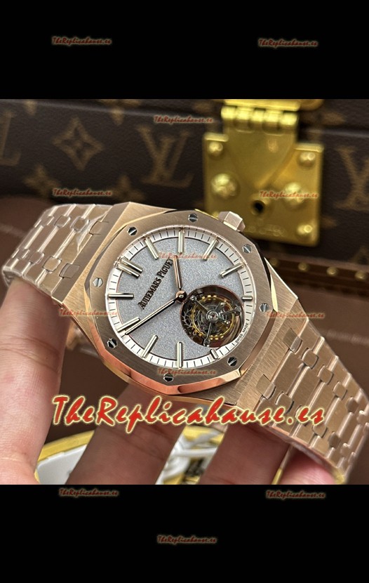 Audemars Piguet Royal Oak 26730OR Tourbillon Volante de 41 mm en Oro Rosado 904L con Dial Gris.