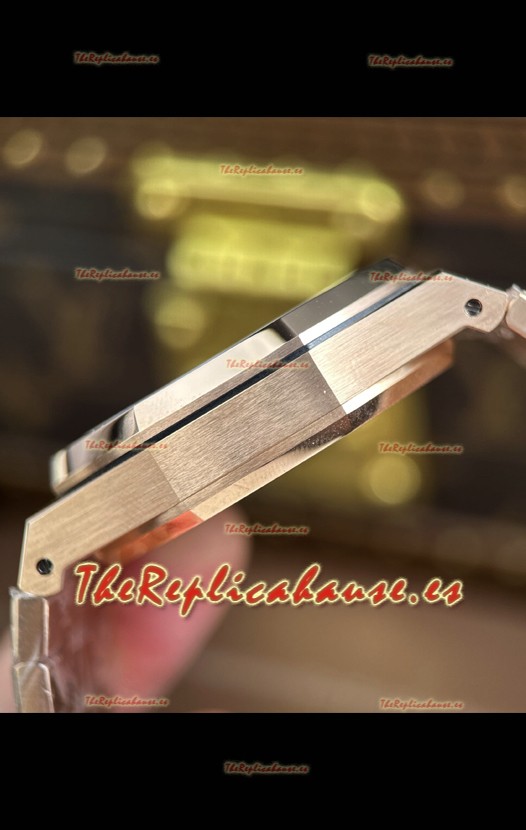 Caja Acero Inoxidable 904L chapada en Oro Rosado 18K Strap completada con Marcas y Grabados Audemars Piguet y cierres con la firma AP.