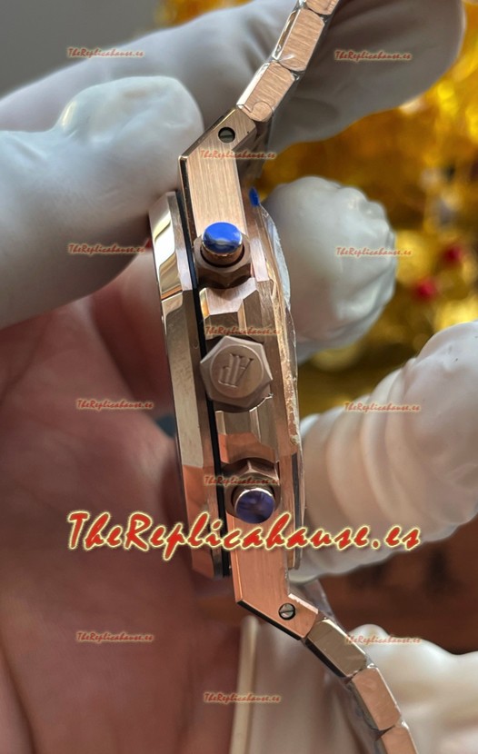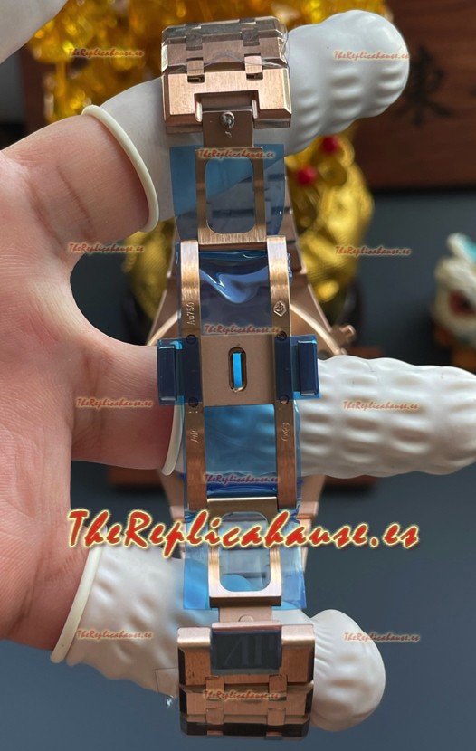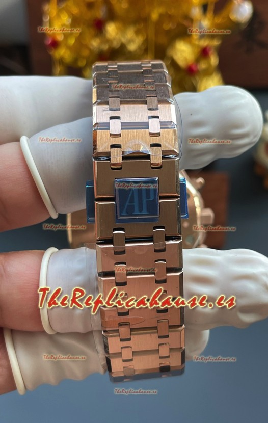Correa Acero Inoxidable 904L chapada en Oro Rosado 18K completada con Marcas y Grabados AP como los originales y cierre desplegable AP