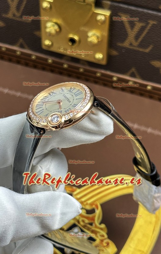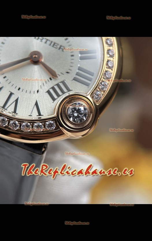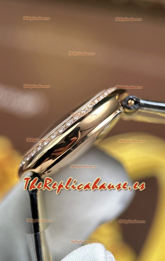 Caja Acero Inoxidable Solido 904L chapada en Oro Rosado 18K. Bisel de Diamantes de Corte Suizo.
