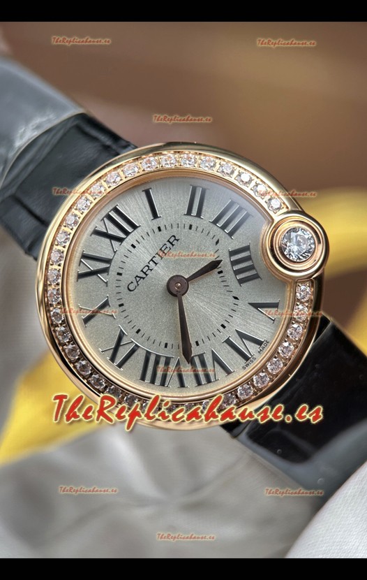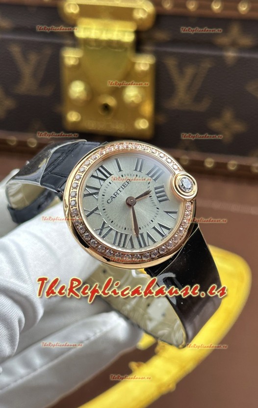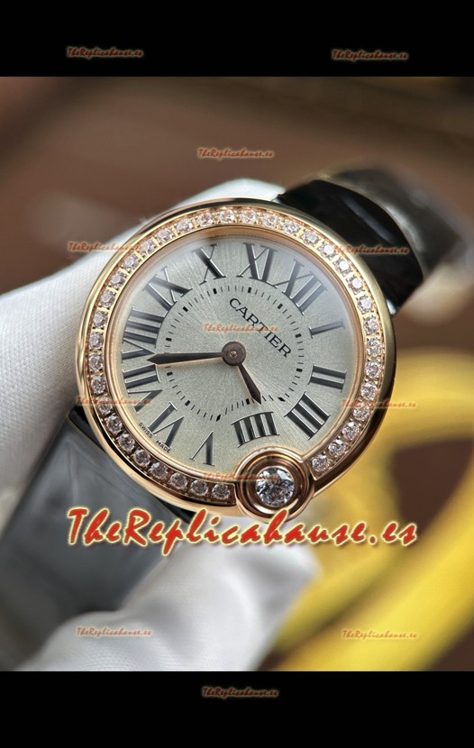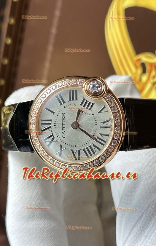 Ballon Blanc De Cartier Cuarzo Suizo Reloj Réplica en Caja Acero Correa de Tela