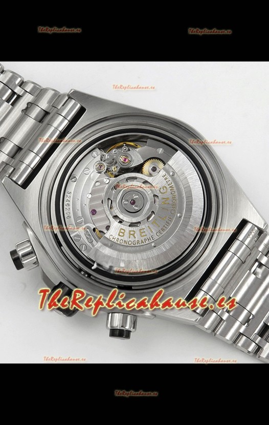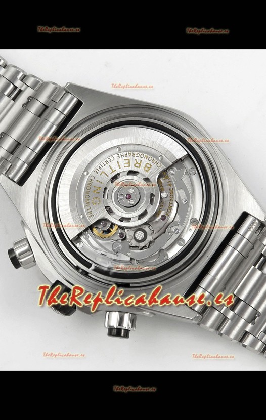Cristal de Zafiro a prueba de Rasguños con Doble Revestimiento AR en ambos lados, Cubierta trasera de Cristal de Zafiro Transparente completada con Marcas y Grabados Breitling