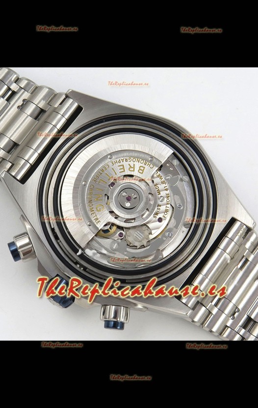 Cristal de Zafiro a prueba de Rasguños con Doble Revestimiento AR en ambos lados, Cubierta trasera de Cristal de Zafiro Transparente completada con Marcas y Grabados Breitling