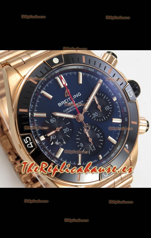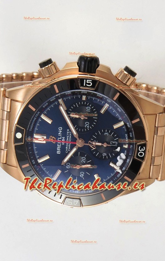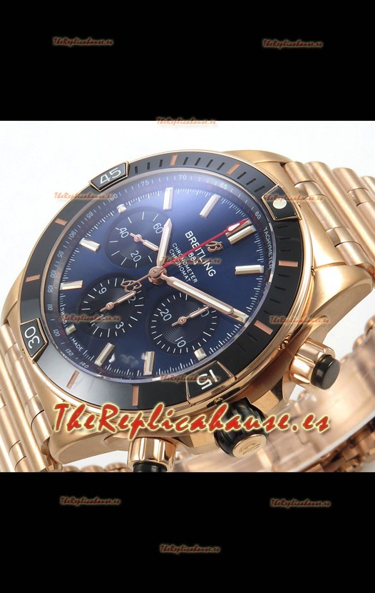Breitling Chronomat Super Clone B01 42 Reloj Edición Suiza Caja Oro Rosado Dial Azul