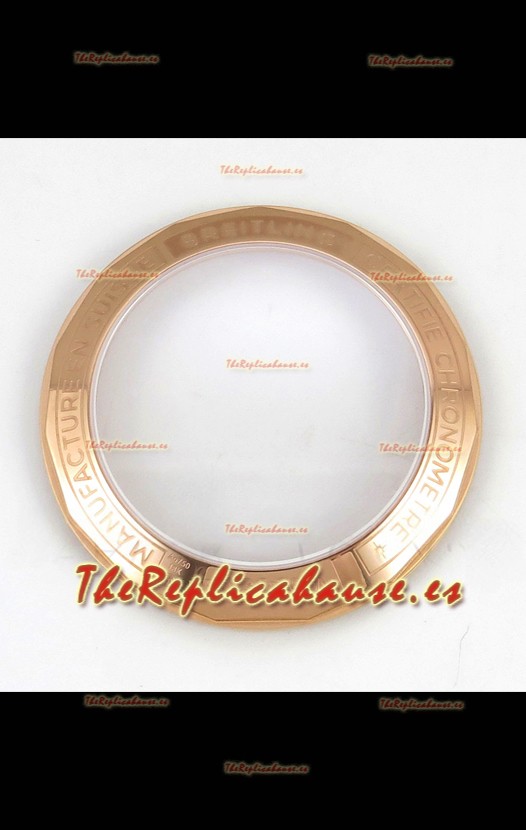 Caja Acero Inoxidable 904L chapada en Oro Rosado 18K completada con Marcas y Grabados Breitling