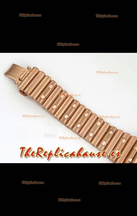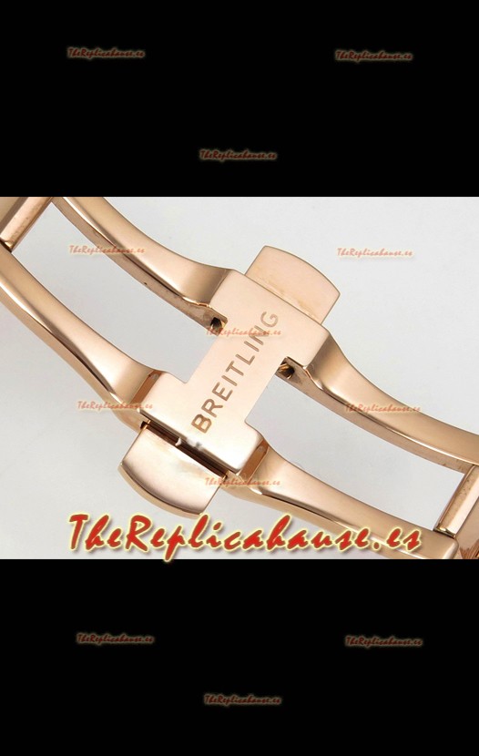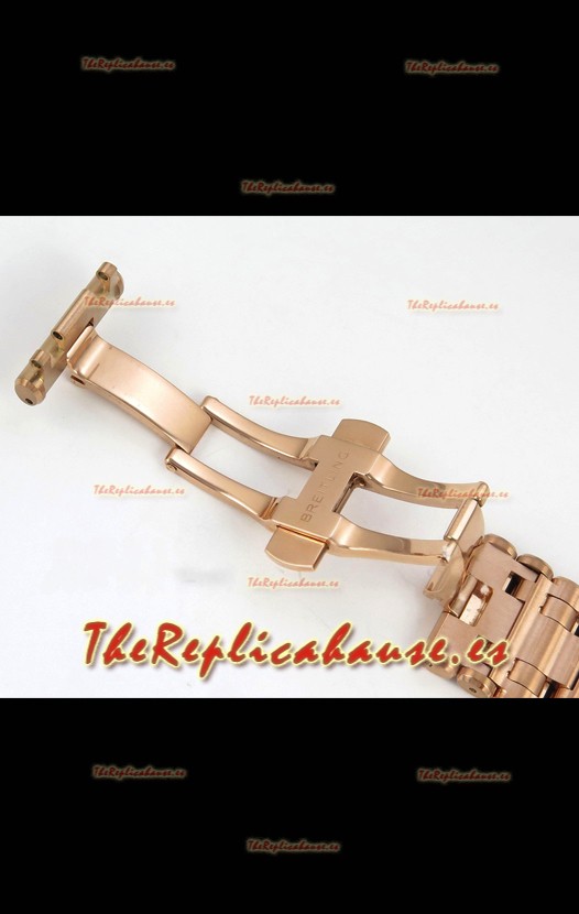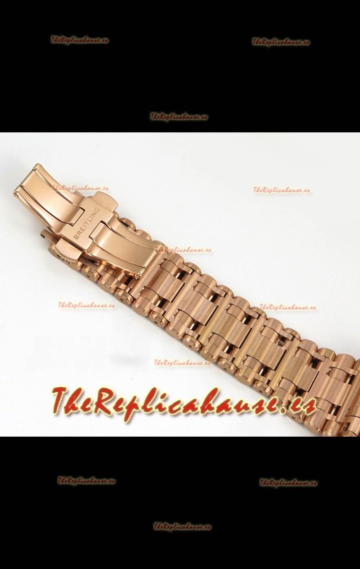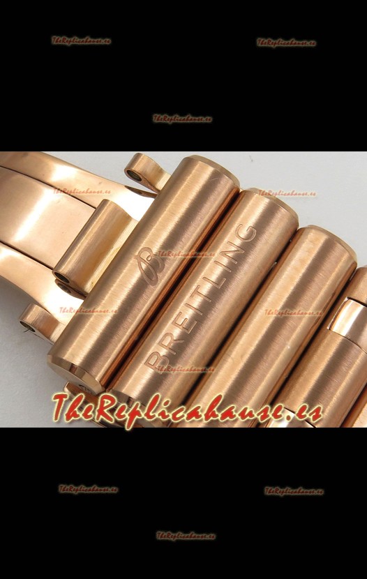 Correa de Acero 904L chapada en Oro Rosado 18K uinida con Pasadores como el Original completada con Marcas y Grabados Breitling como el Original