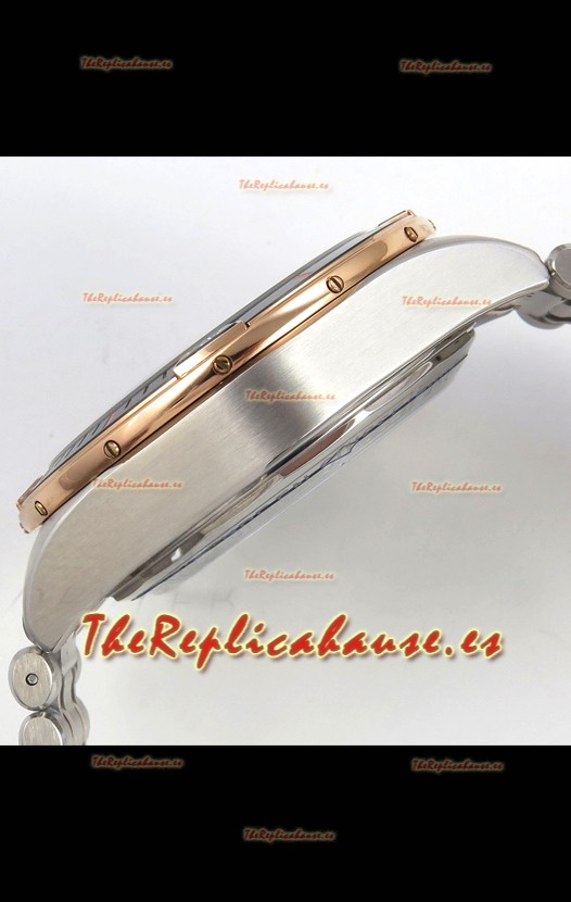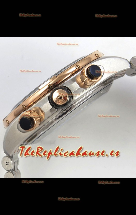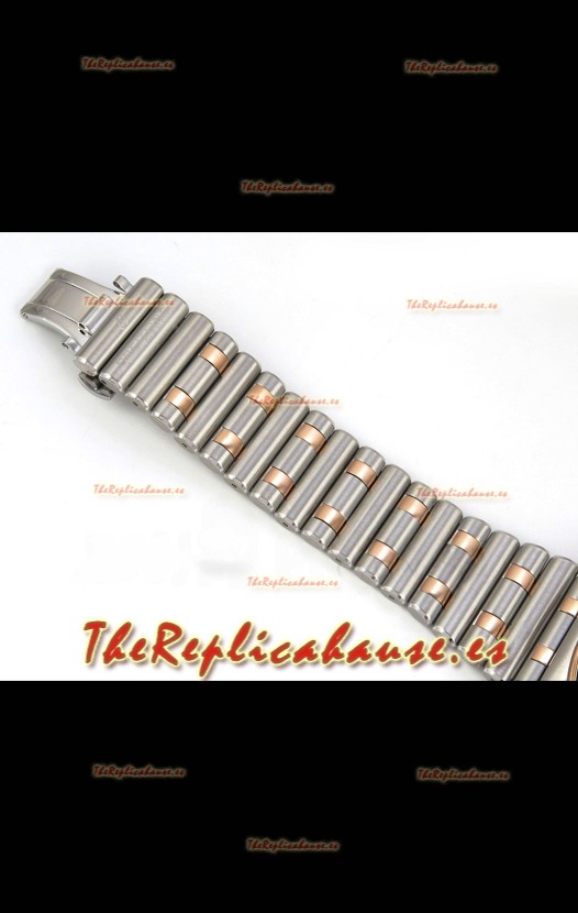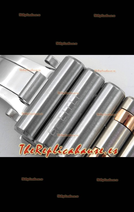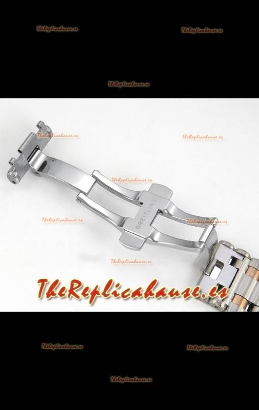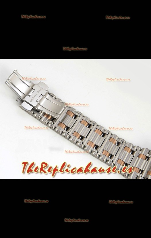 Correa de Acero 904L chapada en Oro Rosado de Dos Tonos de 18K unida con pasadores como los originales, completada con Marcas y Grabados Breitling como los Originales.