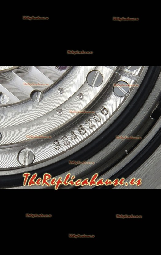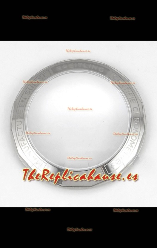 Cristal de Zafiro a prueba de Rasguños con Doble Revestimiento AR en ambos lados, Cubierta trasera de Cristal de Zafiro Transparente completada con Marcas y Grabados Breitling