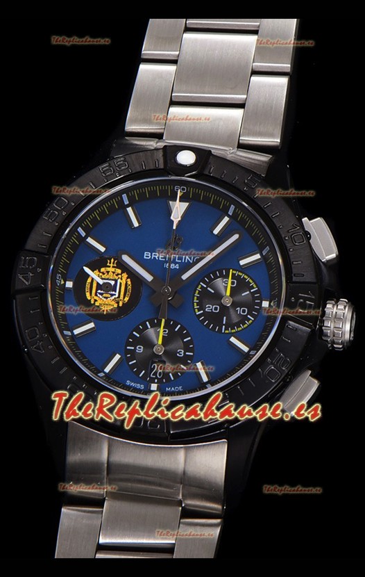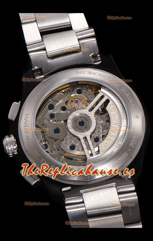 Caja de Acero 904L con Revestimiento DLC completada con Marcas y Detalles Breitling como en los originales.