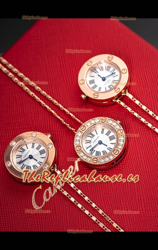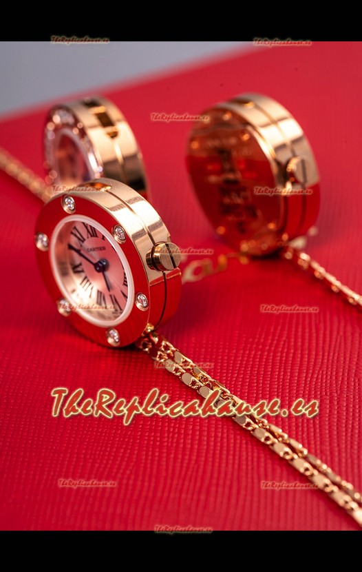 Caja Acero Inoxidable 904L chapada en Oro Rosado con Trasera de la Caja Solida completada con Marcas y Grabados Cartier