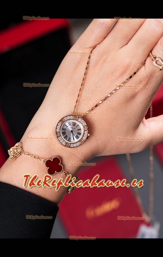Caja Acero Inoxidable 904L chapada en Oro Rosado con Trasera de la Caja Solida completada con Marcas y Grabados Cartier