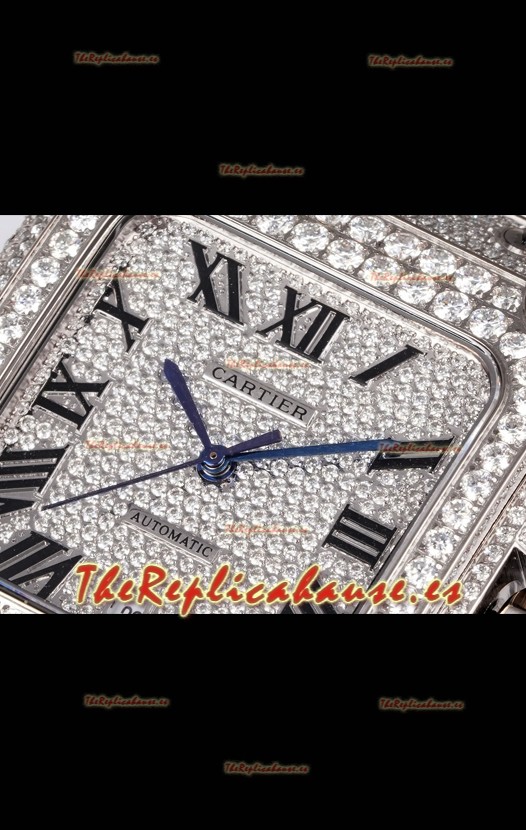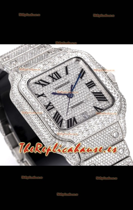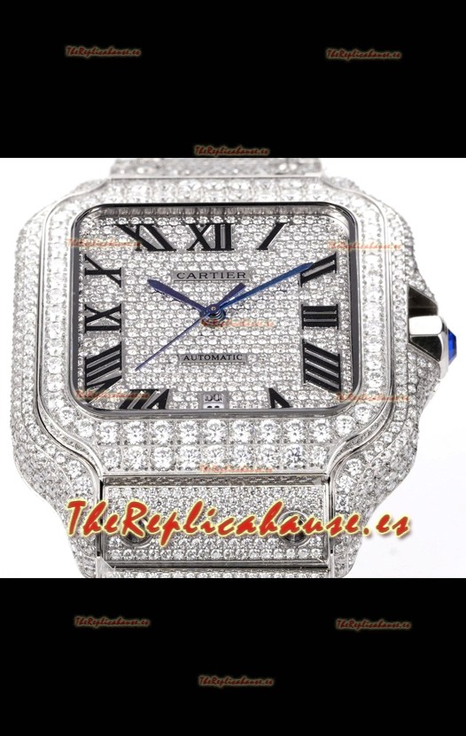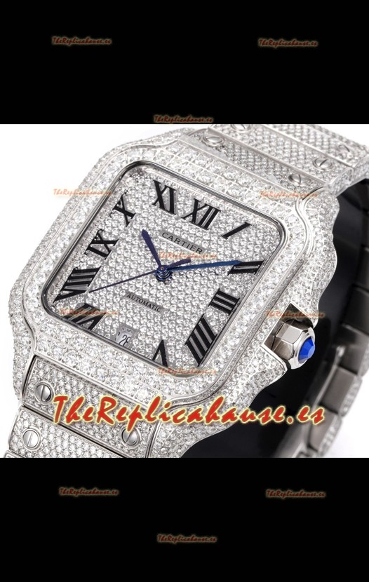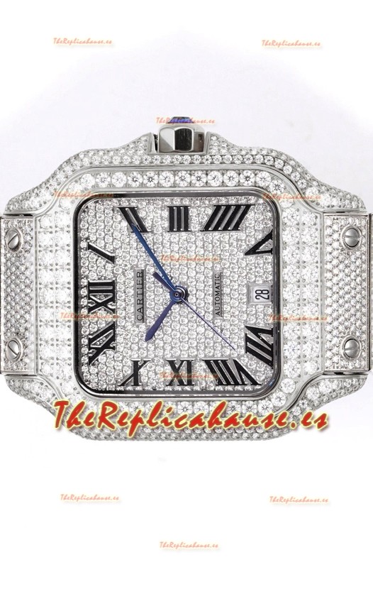 Cartier "Santos De Cartier" Acero Inoxidable W/ Diamantes Dial Romano Réplica Espejo 1:1 - 40MM - Diamantes Genuinos