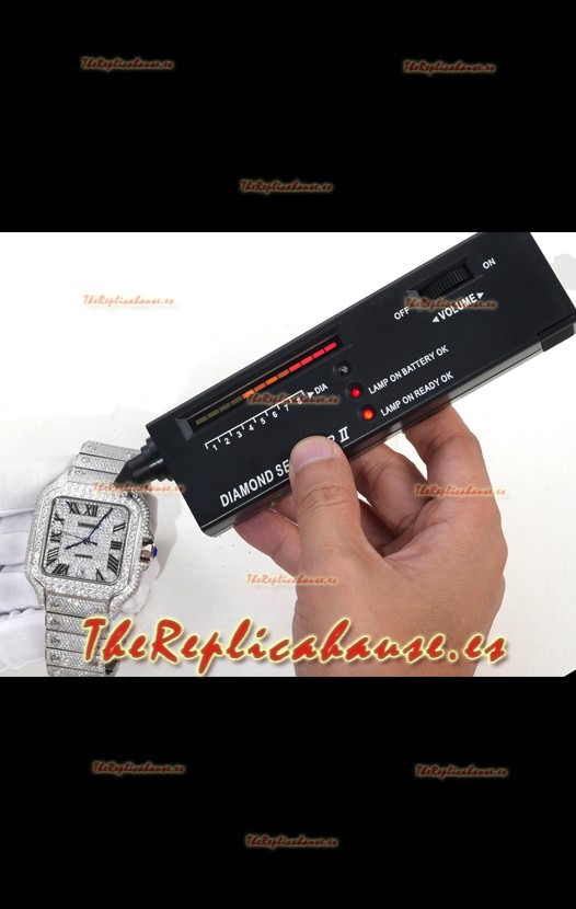 Diamantes Genuinos incrustados en Caja y Bisel, que superan las pruebas de Diamantes.