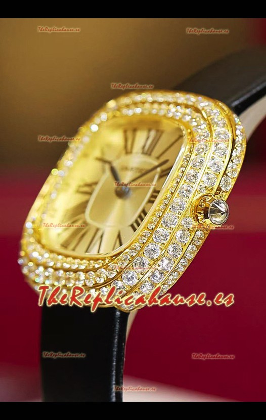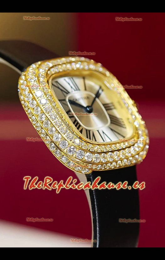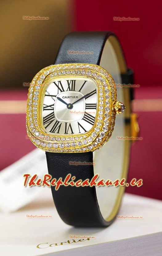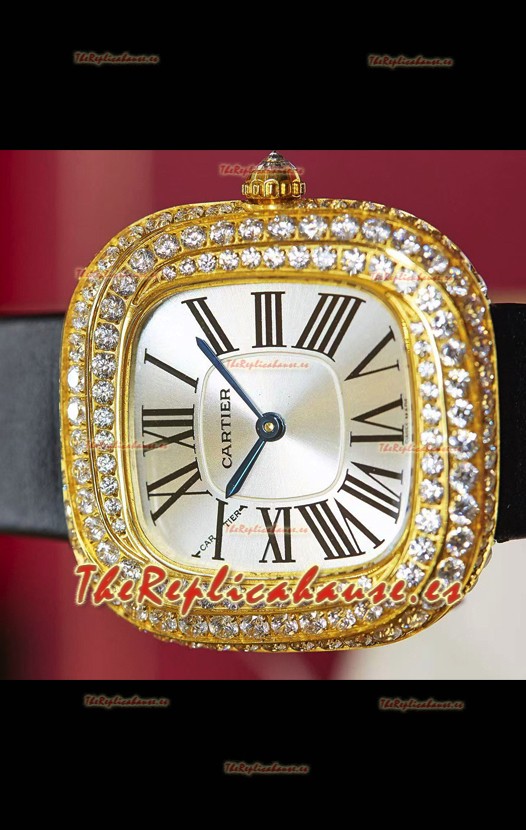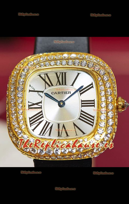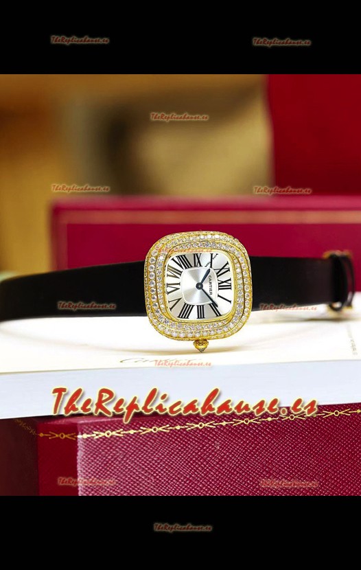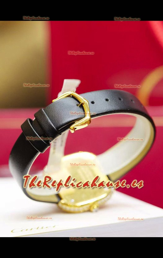 Coussin De Cartier Oro Amarillo Reloj Réplica Suizo Correa Negra