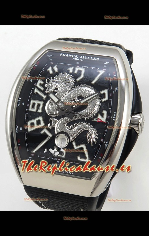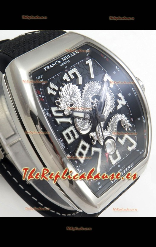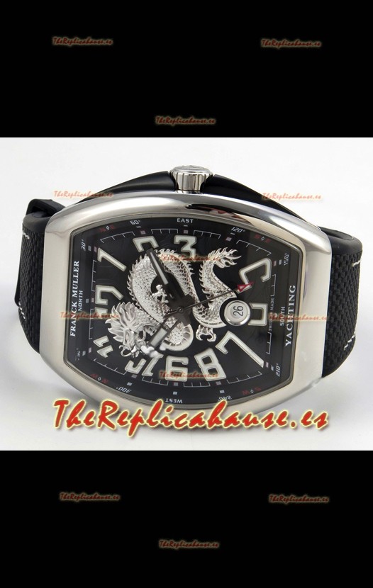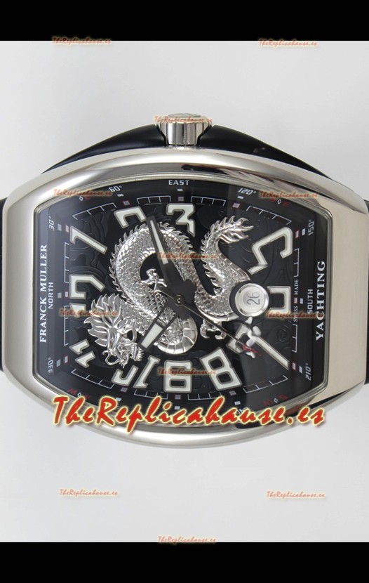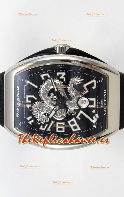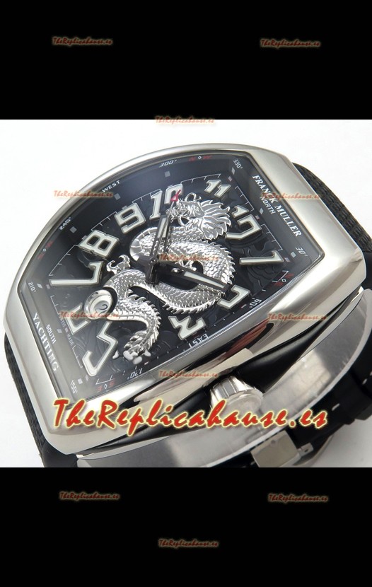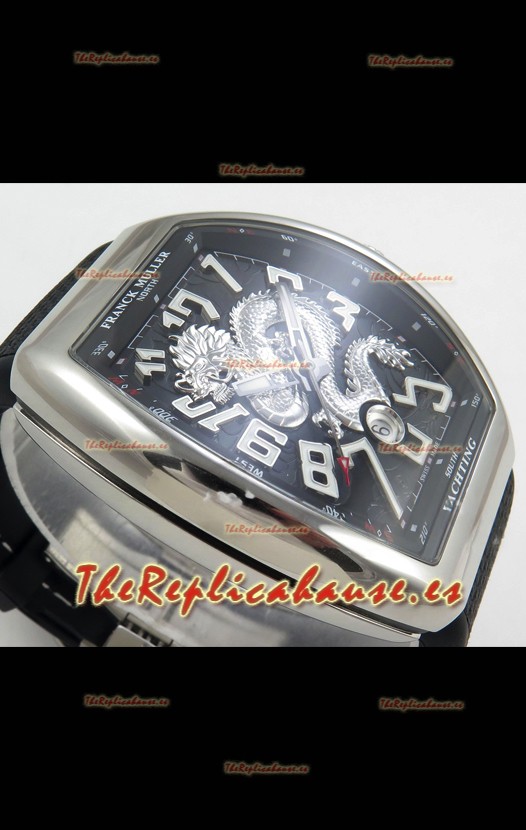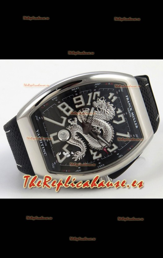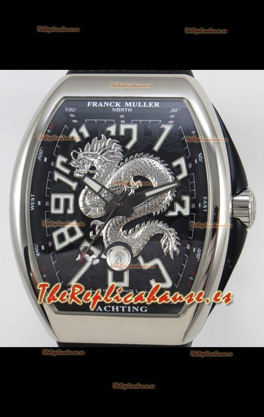 Franck Muller Vanguard Super Clone Yachting Dragon V45 Reloj Dial Negro Caja Acero Inoxidable