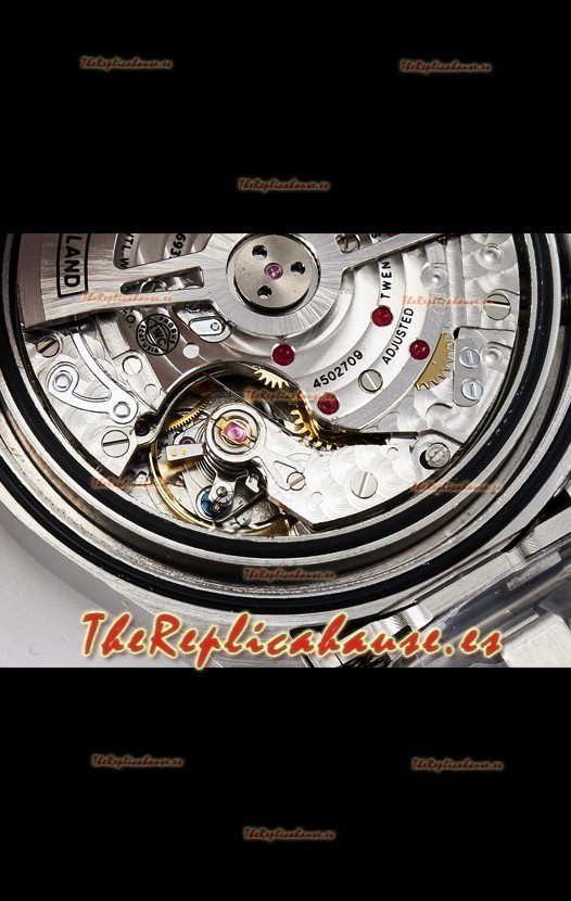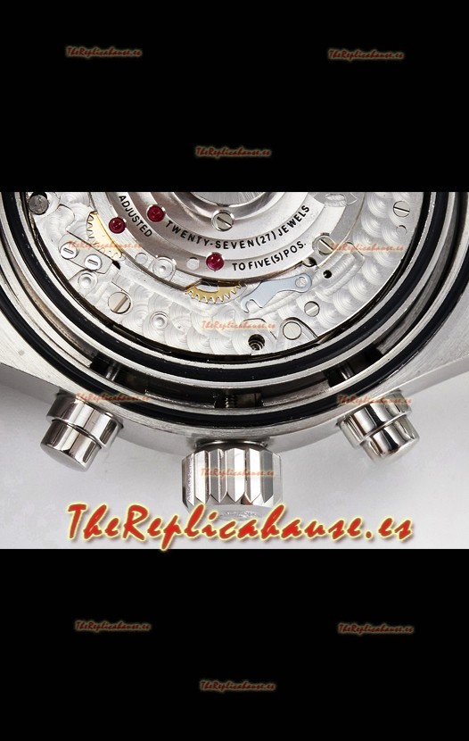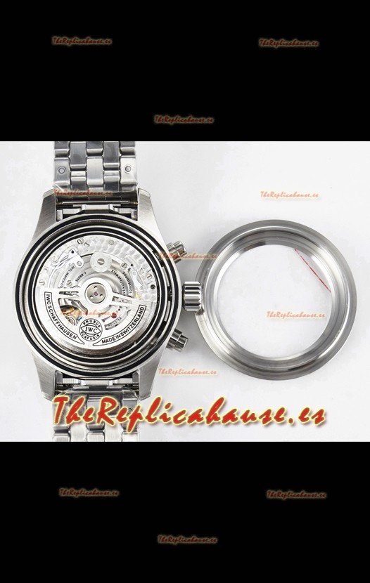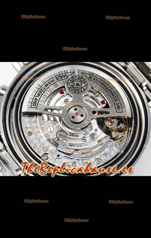 Movimiento Base 7750 Modificado para Parecerse al Movimiento IWC 69385. Plato y Rotor Decorados en Platino. La configuración de Maquinaria más Idéntica a la de los Originales.