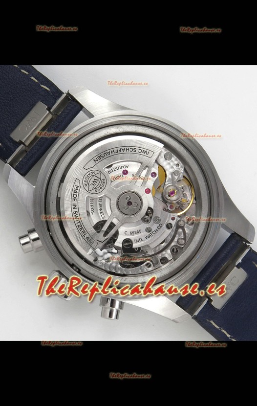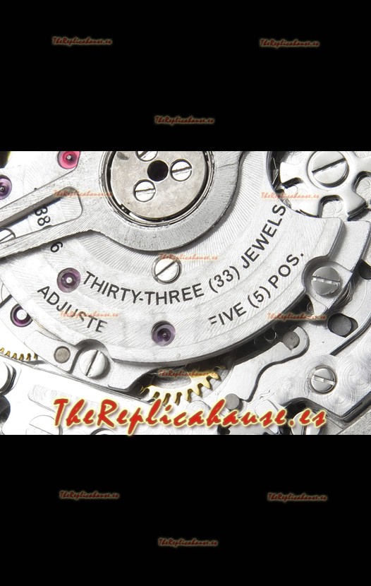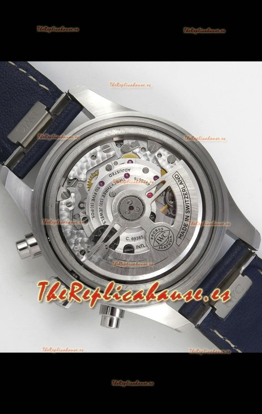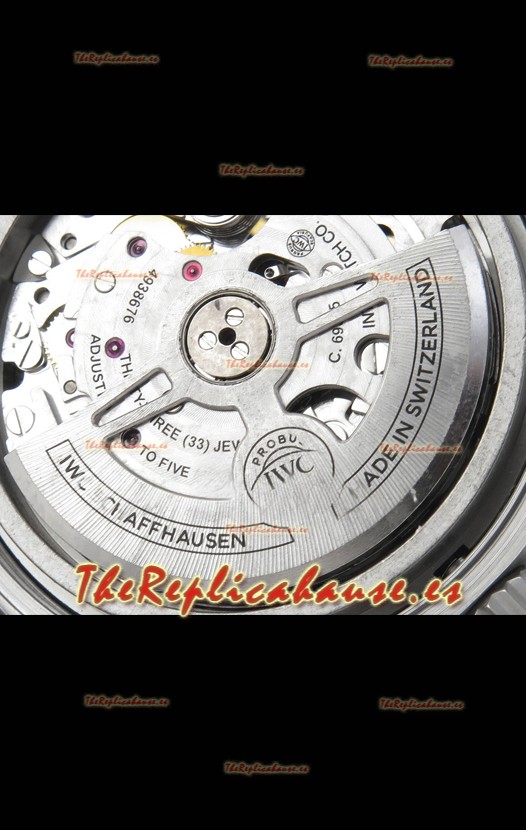 Movimiento Base 7750 Modificado para Parecerse al Movimiento IWC 69385. Plato y Rotor Decorados en Platino. La configuración de Maquinaria más Idéntica a la de los Originales.