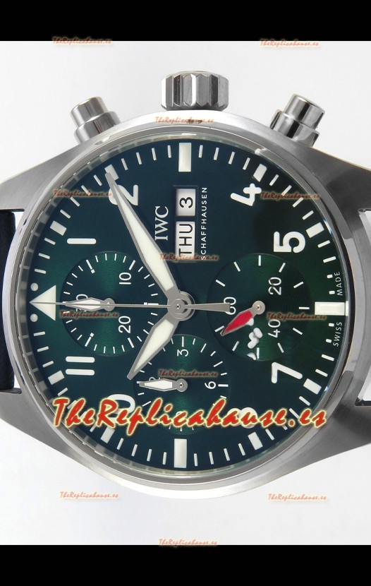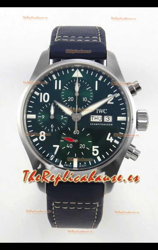 IWC Super Clone Pilot Cronógrafo Edition Dial Verde Leather Reloj Réplica Suizo