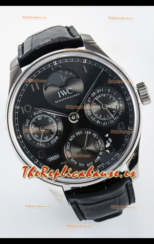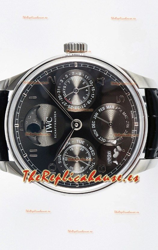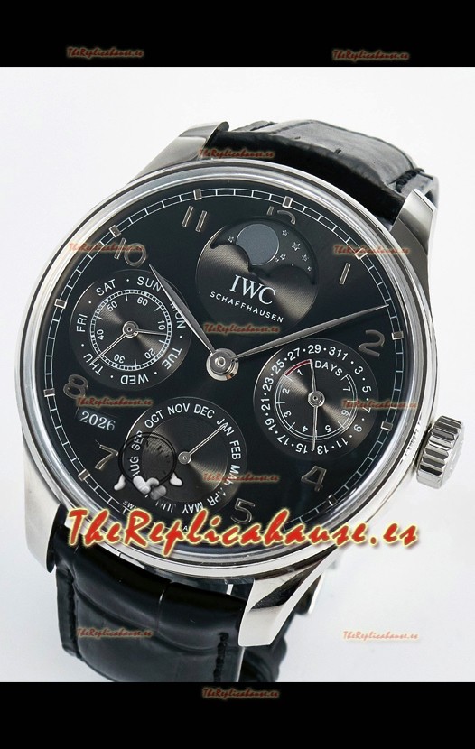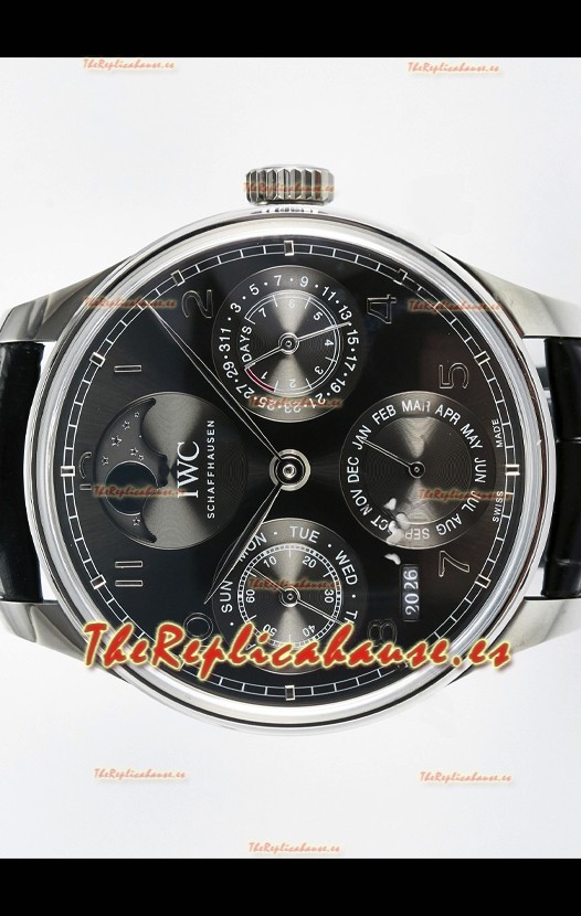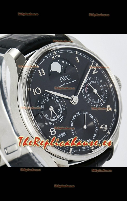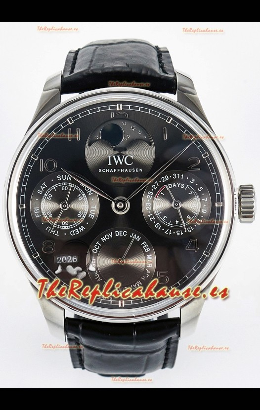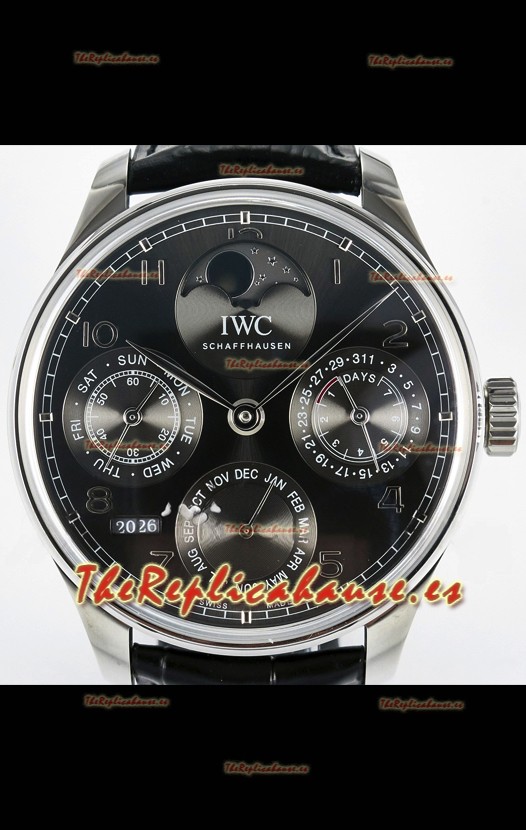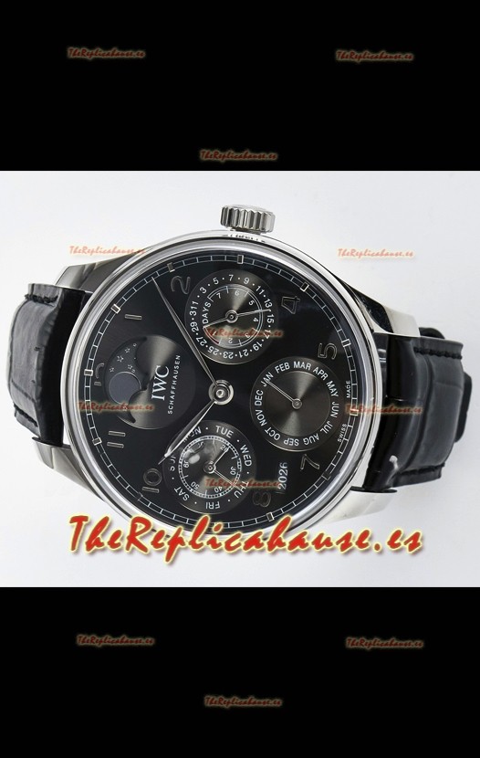IWC Super Clone Portuguese Perpetual Calendar Caja Acero Dial Blanco Reloj Réplica