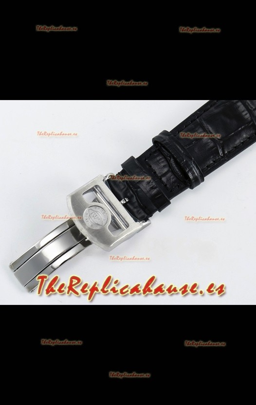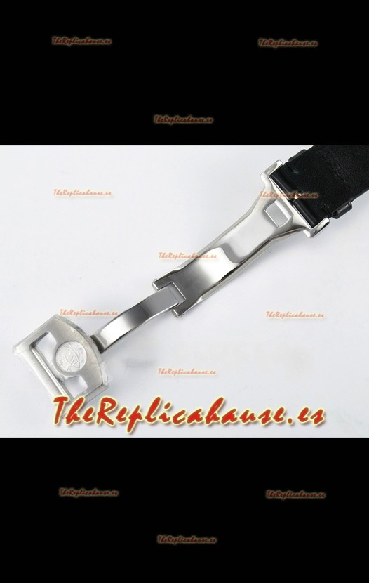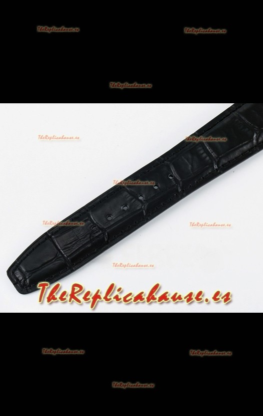 Genuina Correa Piel con Marcas y Grabados IWC y Hebilla Tang chapada en Oro Rosado 18K