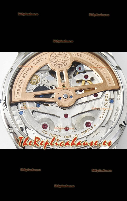 Movimiento Suizo ETA 2836-2. Ensamblado para parecerse al Movimiento Caliber 52610 IWC. Alineamiento de la Maquinaria según los originales