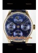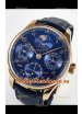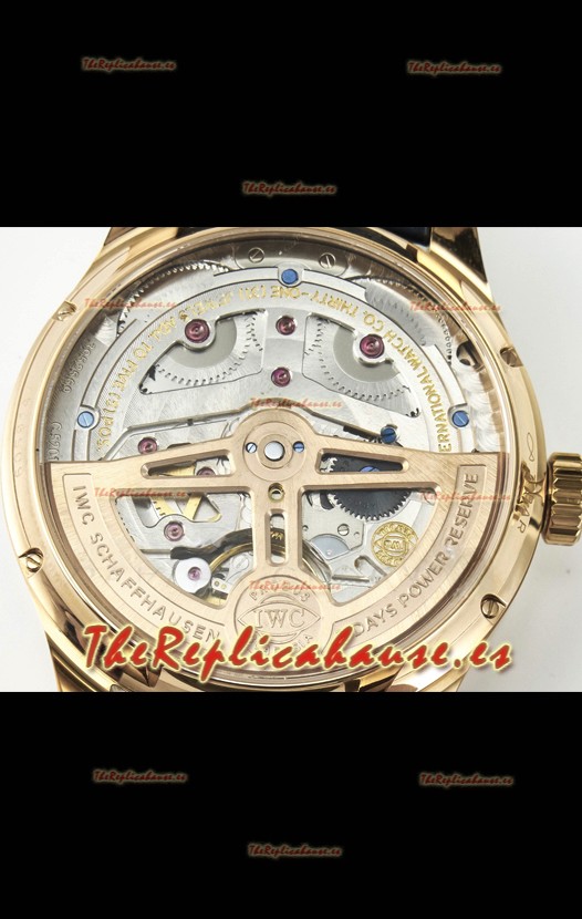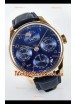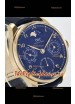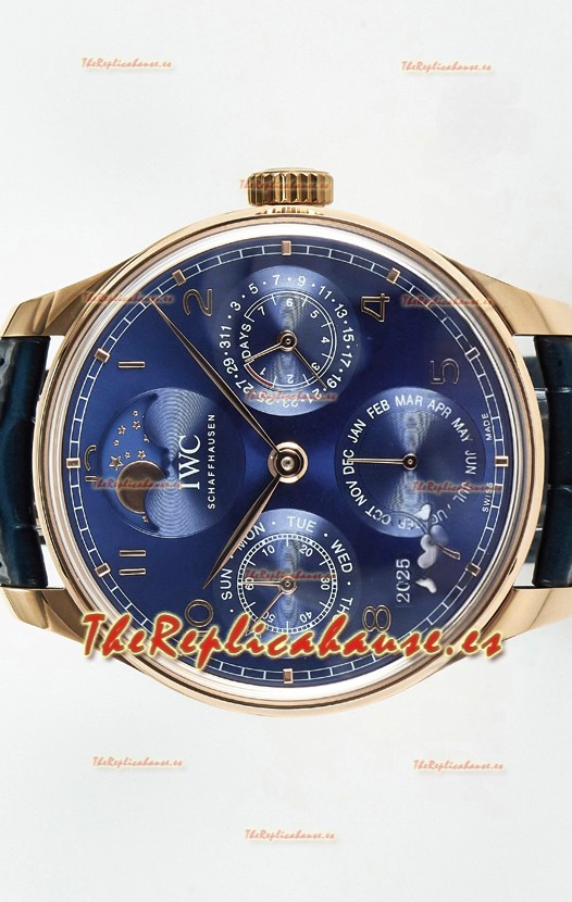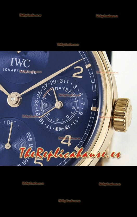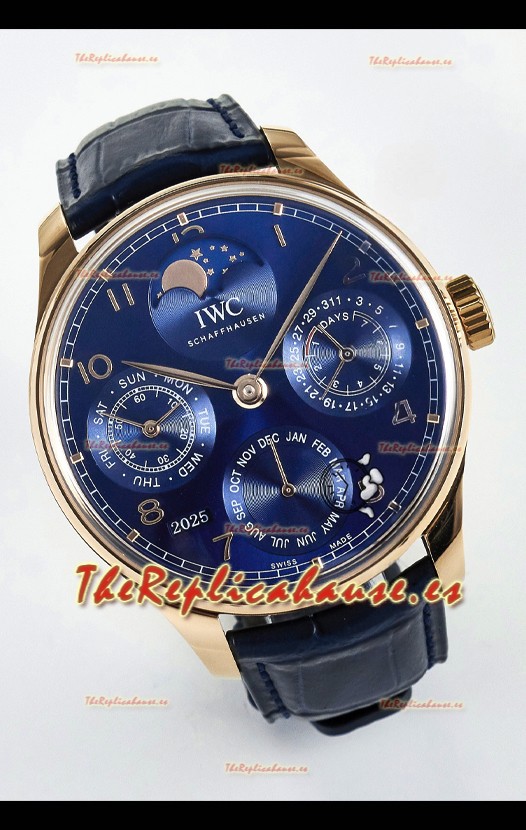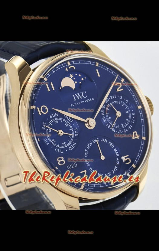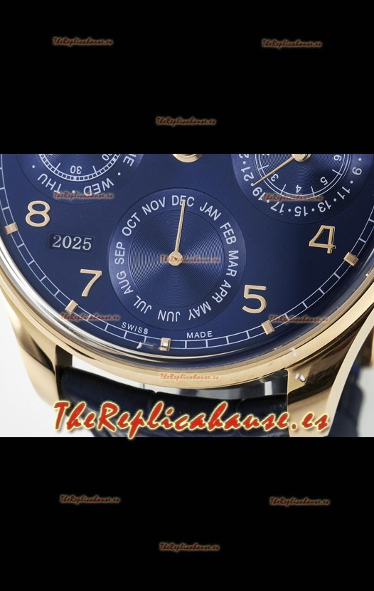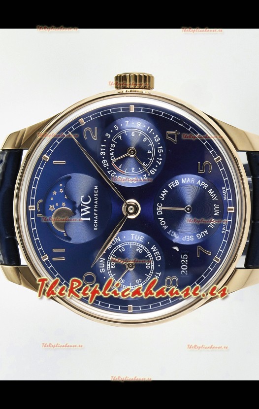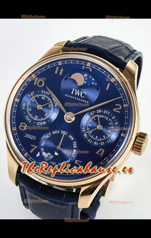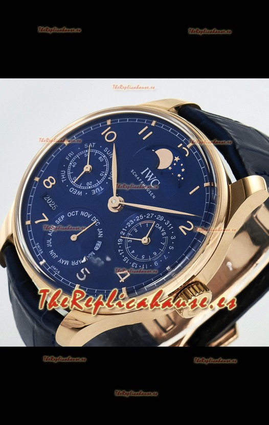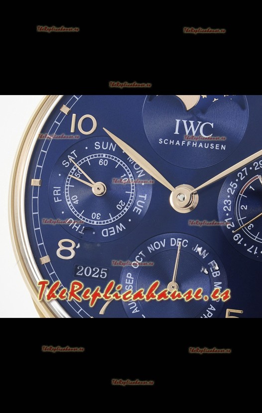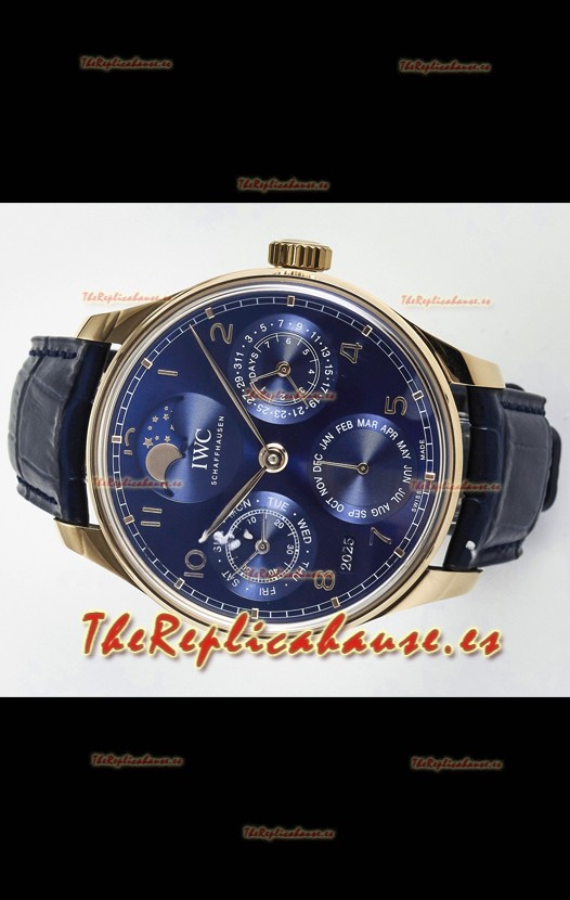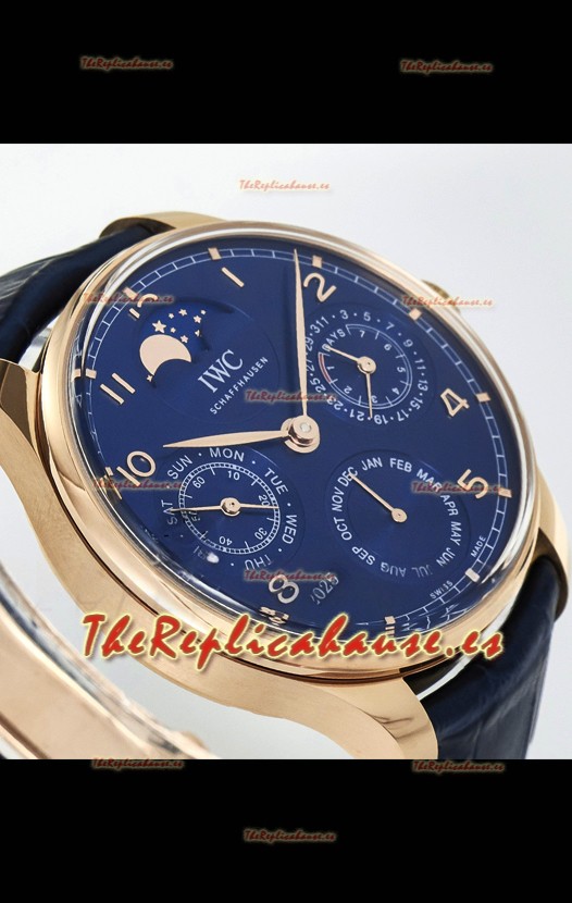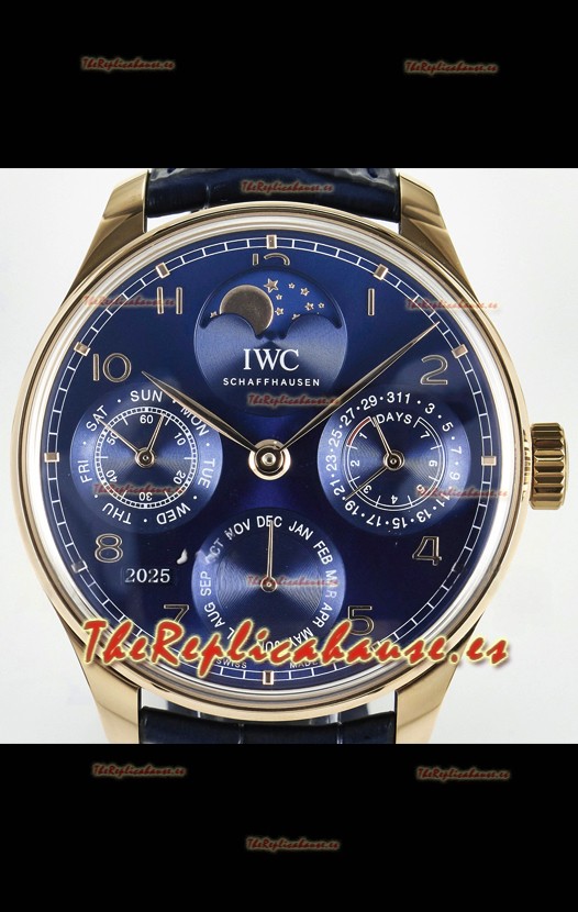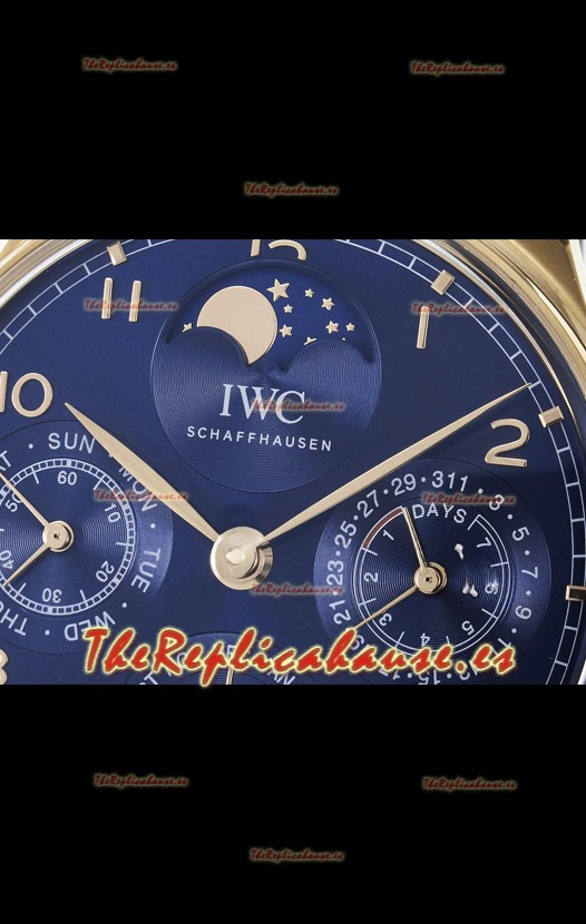 IWC Super Clone Portuguese Perpetual Calendar Rose Dial Dorado Azul Reloj Réplica