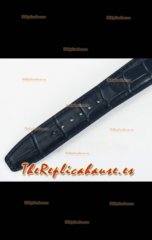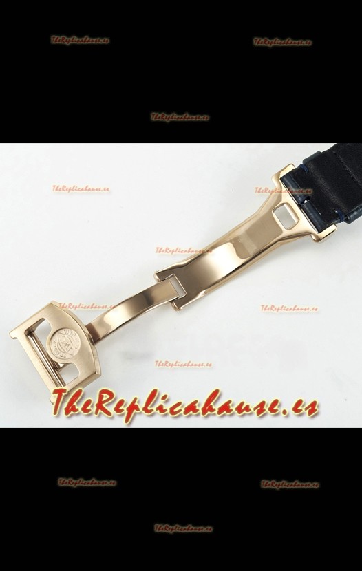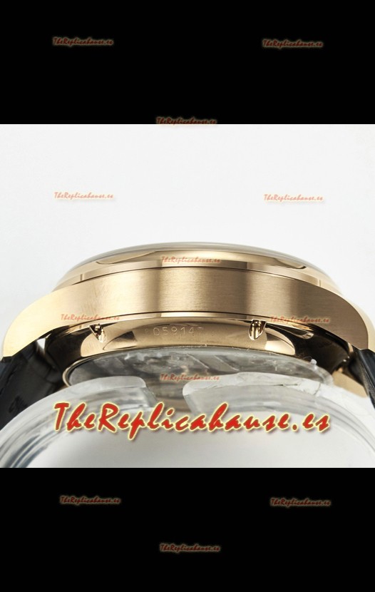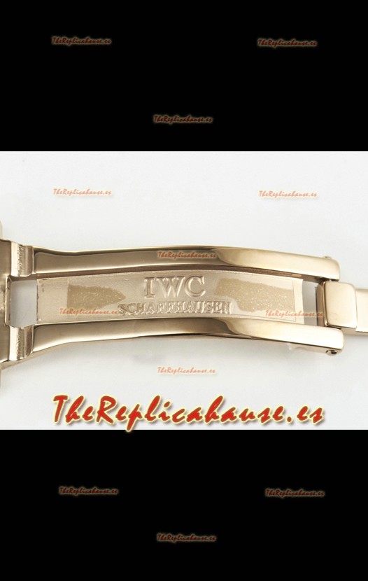 Genuina Correa Piel con Marcas y Grabados IWC y Hebilla Tang chapada en Oro Rosado 18K