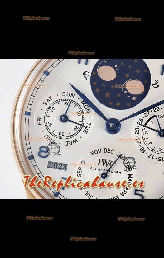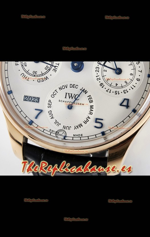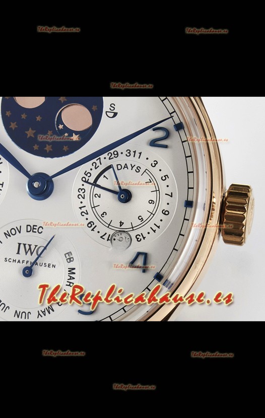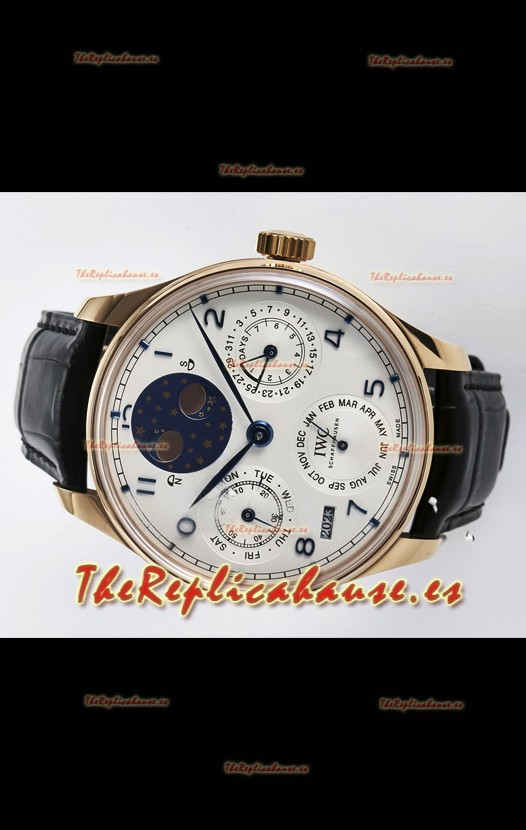 IWC Super Clone Portuguese Perpetual Calendar Rose Dial Dorado Blanco Reloj Réplica