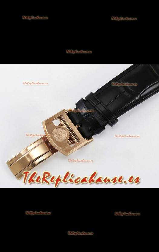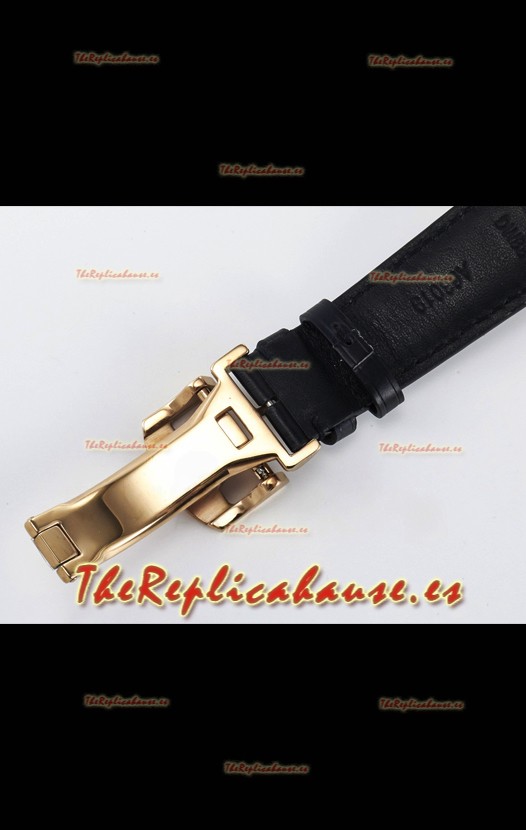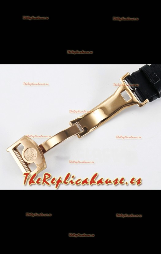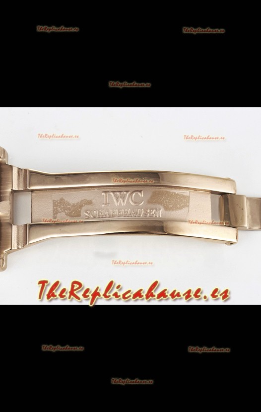 Genuina Correa Piel con Marcas y Grabados IWC y Hebilla Tang chapada en Oro Rosado 18K