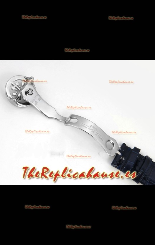 Genuina correa de Piel con Cierre Plegable de Acero completada con Marcas y grabados Patek Philippe.