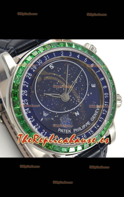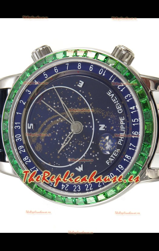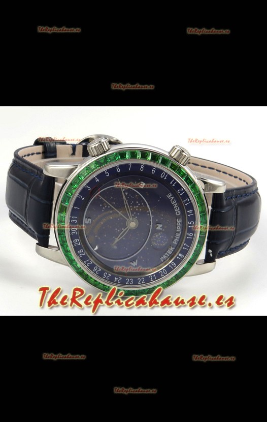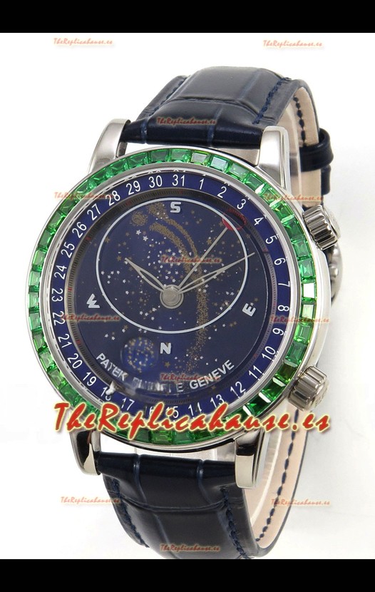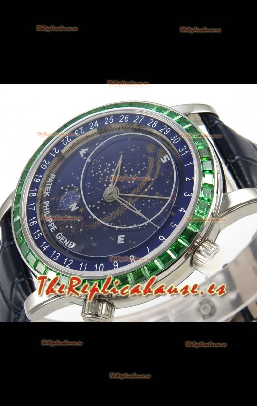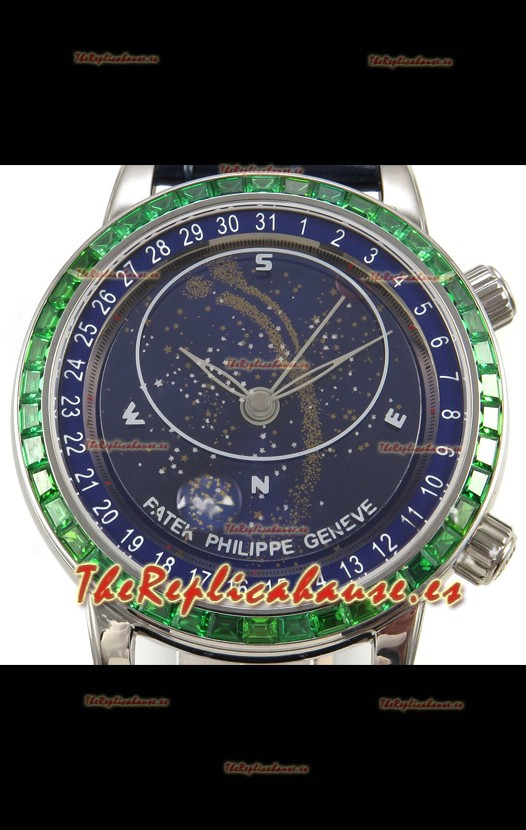 Patek Philippe Grand Complications 6102 Dial Azul Diamantes Verdes Reloj Réplica Suizo
