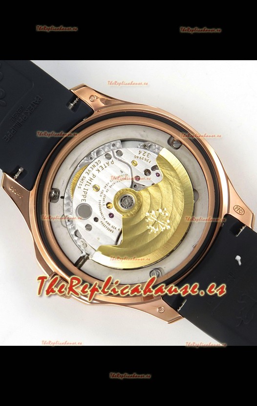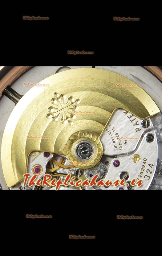Genuino Movimiento Suizo 9015 ensamblado para Parecerse al Auténtico Movimiento Estilo Patek Philippe PP SC324 Calibre. Rotor Actualizado, Puentes y Grabados en Movimiento.