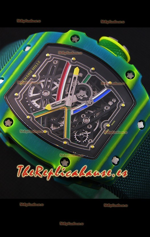 Caja de una Sola Pieza Composite en Verde completada con Marcas y Grabados Richard Mille
