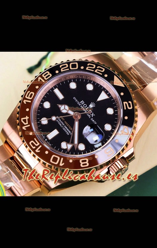 El mejor Rolex GMT replicado hasta la fecha. El primer modelo de Rolex en adoptar una Caja y Correa de Acero 904L, que es el mismo acero usado por Rolex