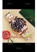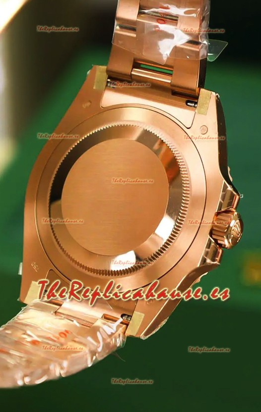 Correa de Acero Inoxidable 916L chapada en Oro Rosado 18K unida con Tornillos, el mejor brazalete fabricado hasta la fecha para la Serie GMT con Cierres estilo Flip Lock completos con Marcas y Grabados Rolex. Barra de Resorte Lug 2MML con cabezas redondeadas exactamente como en las Correas de los Relojes GMT Originales.