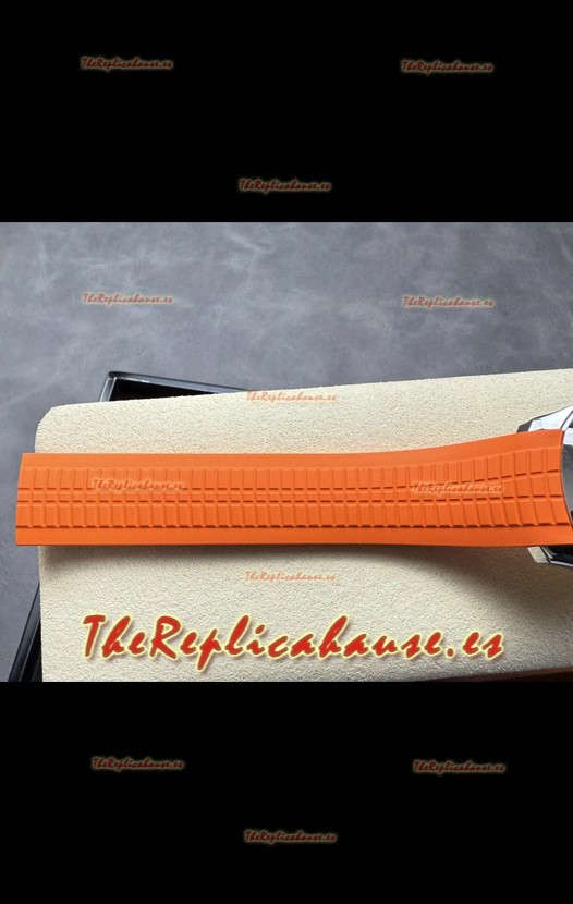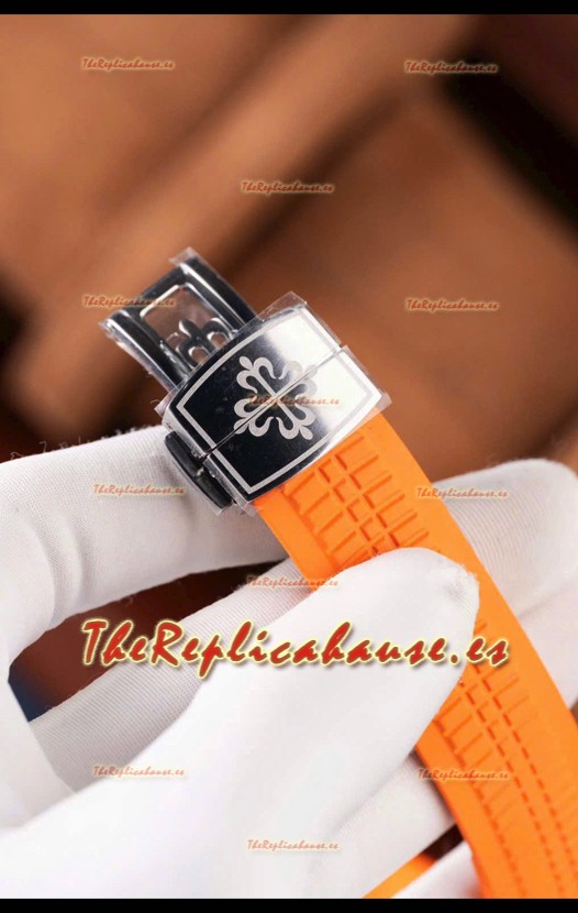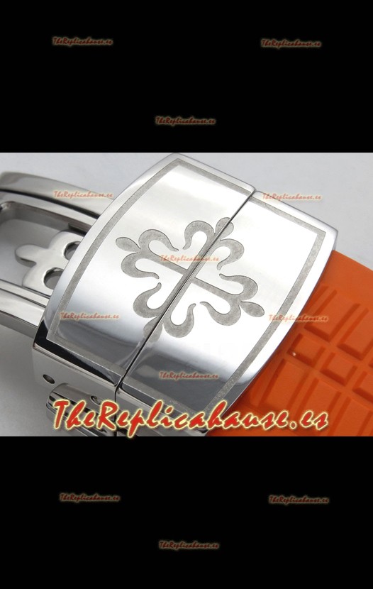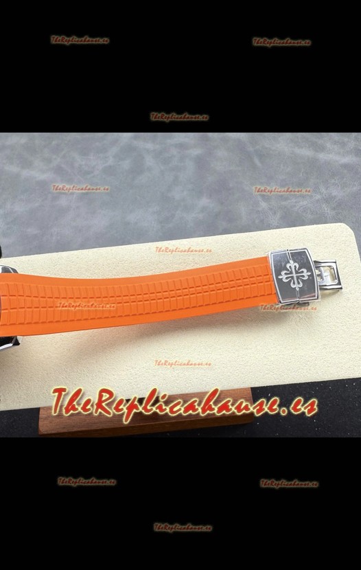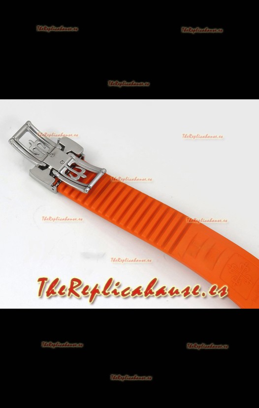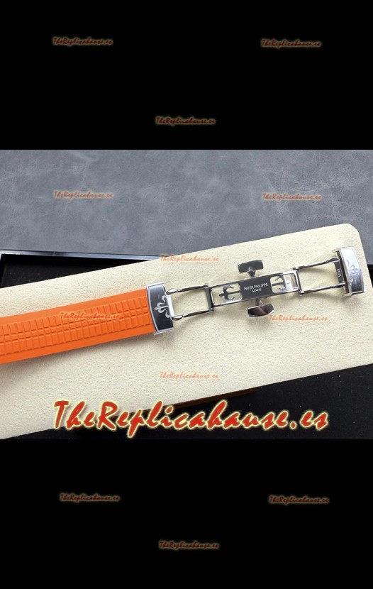 Correa de Goma Curvada con Cierre Plegable completada con Marcas y grabados Patek Philippe. Un Cierre Muy Actualizado para esta serie con marcas/grabados mucho más precisas.