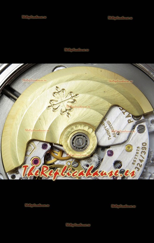Genuino Movimiento Suizo Automático 9015 ensamblado para Parecerse al Auténtico Movimiento Estilo Patek Philippe PP 324 CS Calibre. Rotor Actualizado, Puentes y Grabados en Movimiento.