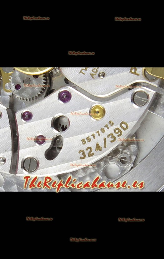 Genuino Movimiento Suizo Automático 9015 ensamblado para Parecerse al Auténtico Movimiento Estilo Patek Philippe PP 324 CS Calibre. Rotor Actualizado, Puentes y Grabados en Movimiento.