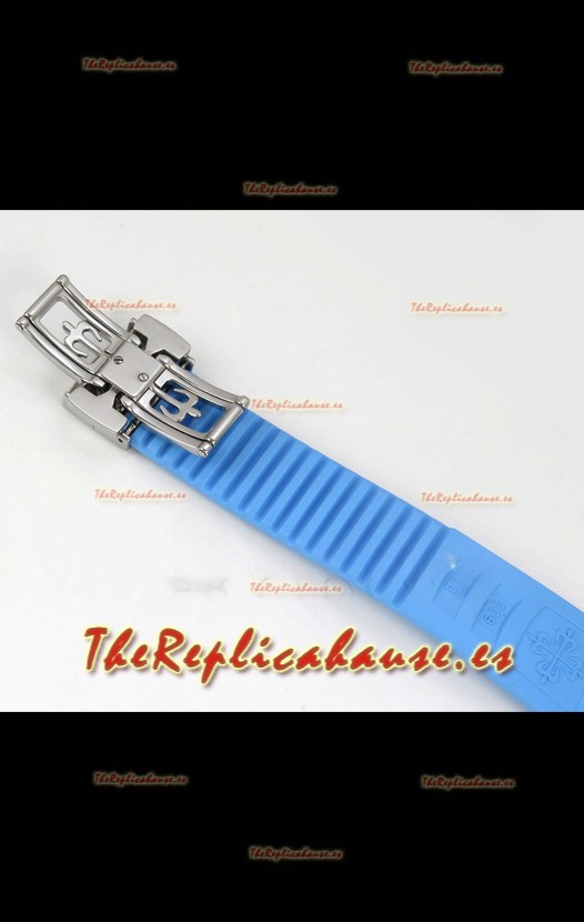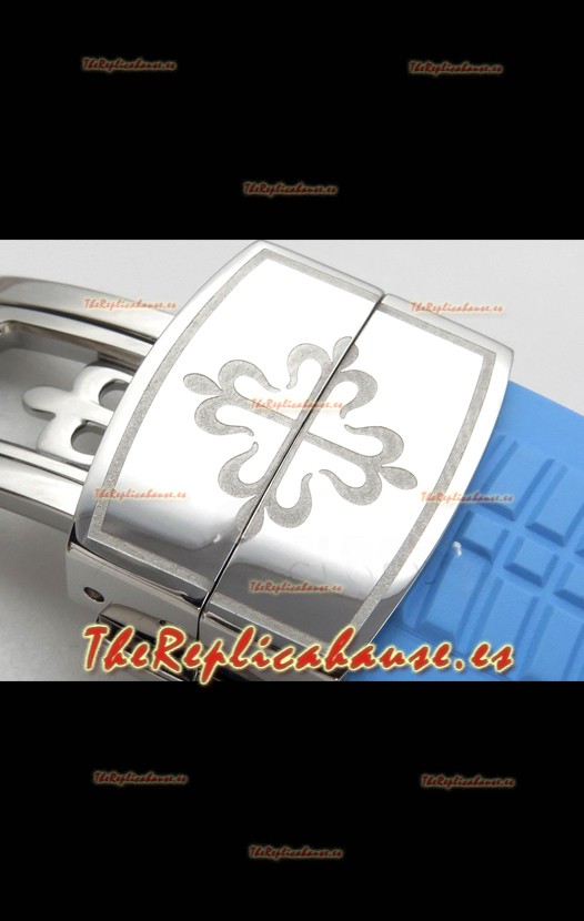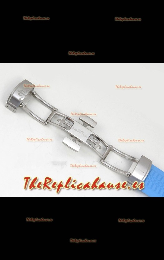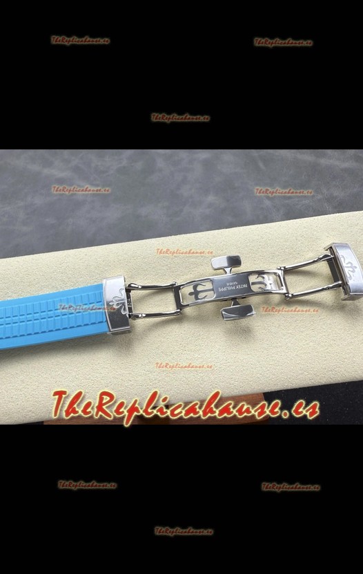 Correa de Goma Curvada con Cierre Plegable completada con Marcas y grabados Patek Philippe. Un Cierre Muy Actualizado para esta serie con marcas/grabados mucho más precisas.
