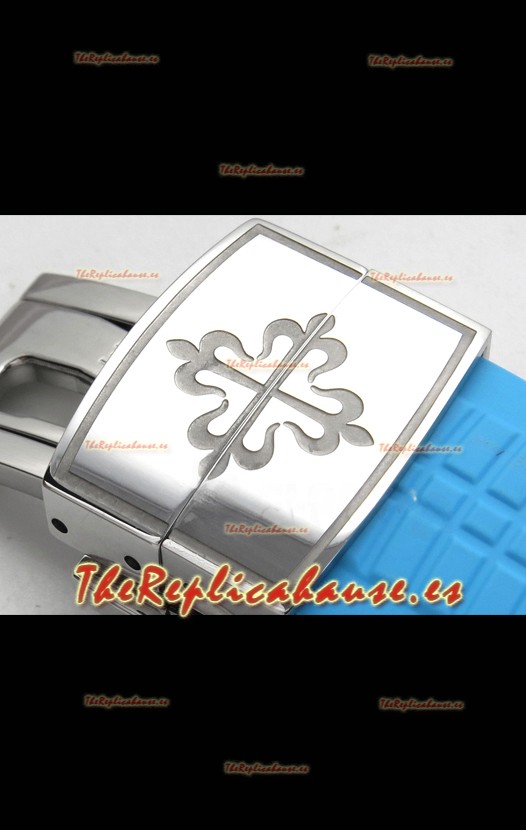 Correa de Goma Curvada con Cierre Plegable completada con Marcas y grabados Patek Philippe. Un Cierre Muy Actualizado para esta serie con marcas/grabados mucho más precisas.