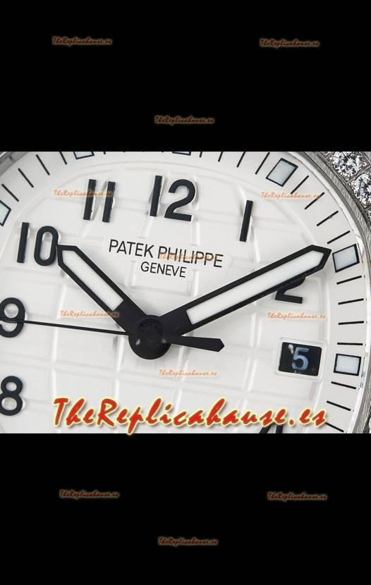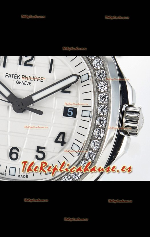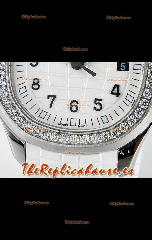 Dial Blanco Texturizado con Ventana de Fecha. Bisel con Diamantes Corte Suizo
