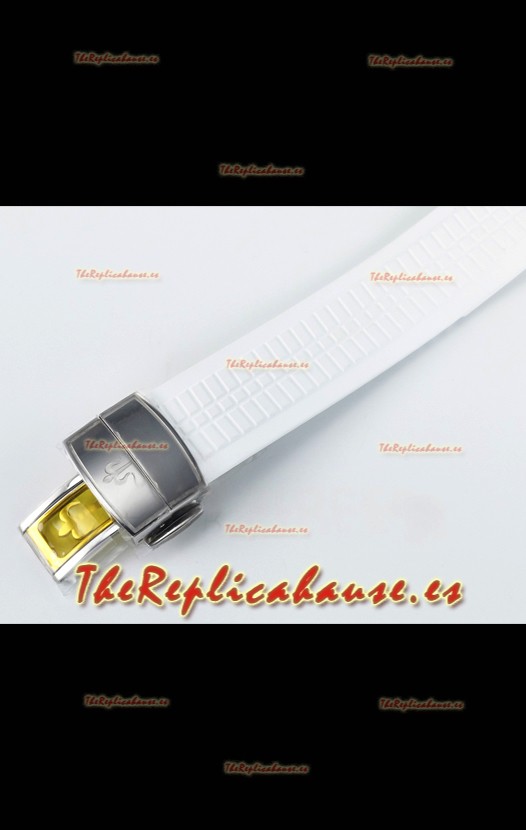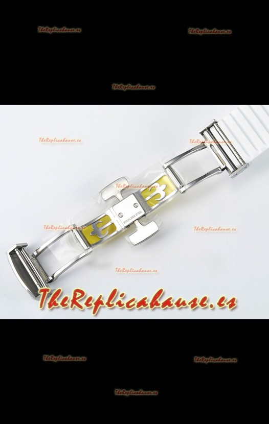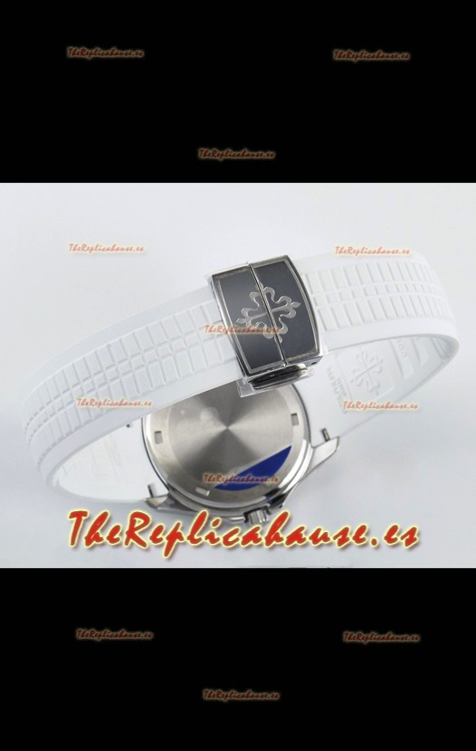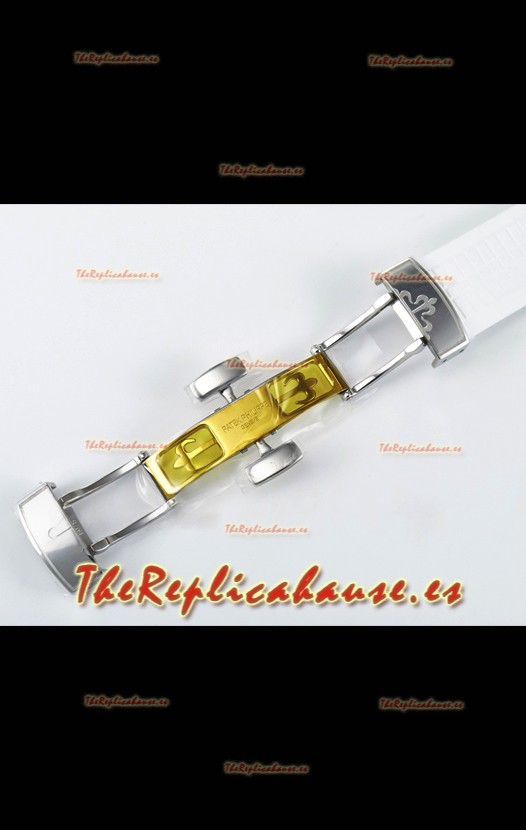 Correa de Goma Curvada Verdecon Cierre Plegable completada con Marcas y grabados Patek Philippe. Un Cierre Muy Actualizado para esta serie con marcas/grabados mucho más precisas.