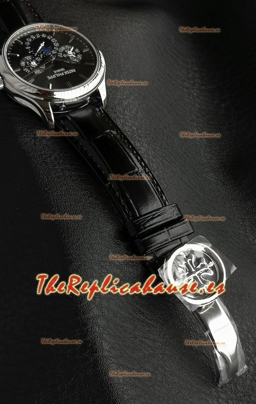 Genuina correa de Piel con Cierre Plegable de Acero completada con Marcas y grabados Patek Philippe.