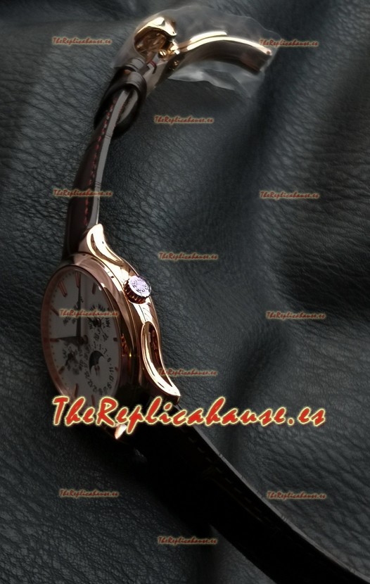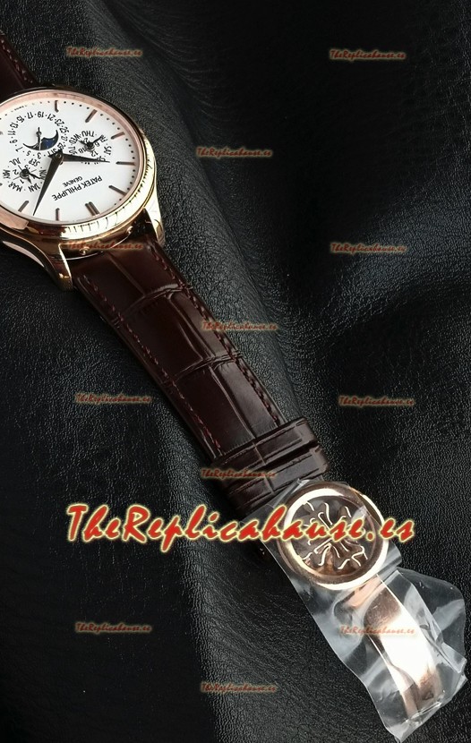 Genuina Correa de Piel con Cierre Plegable chapado en Oro Rosado completada con Marcas y grabados Patek Philippe.
