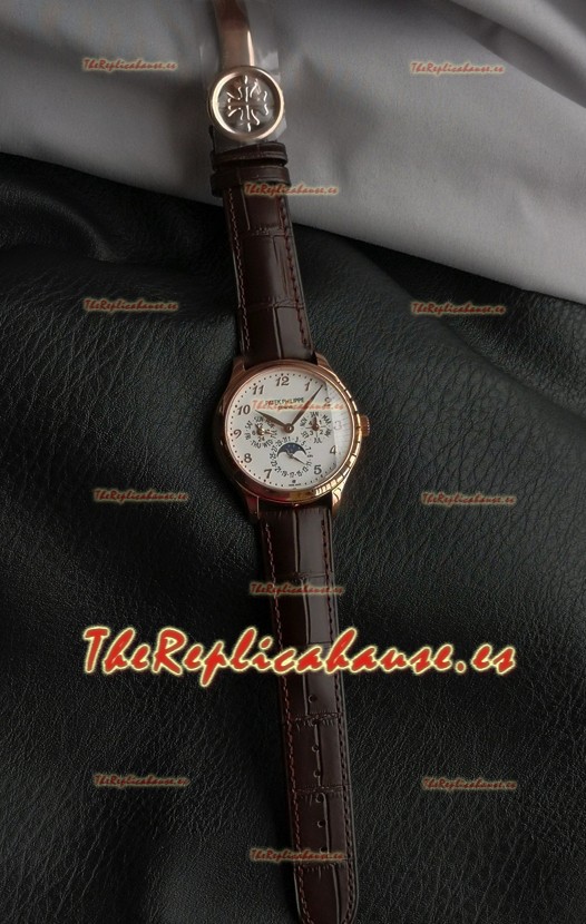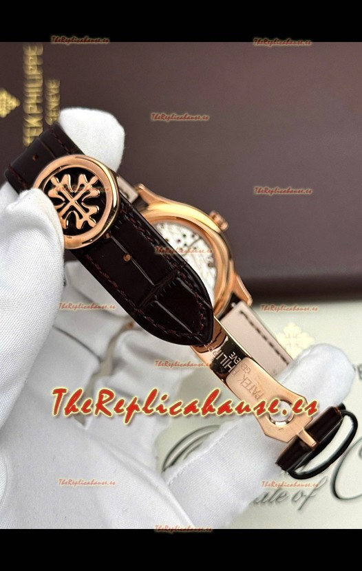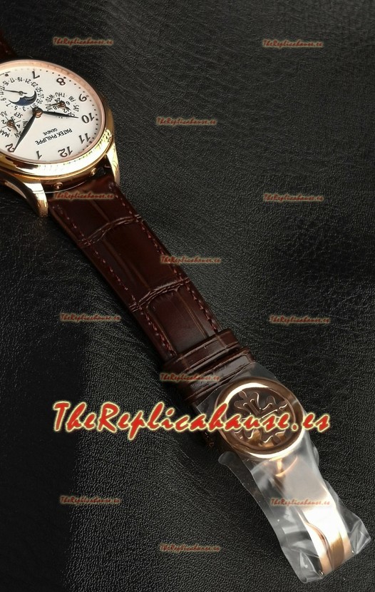 Genuina Correa de Piel con Cierre Plegable chapado en Oro Rosado completada con Marcas y grabados Patek Philippe.