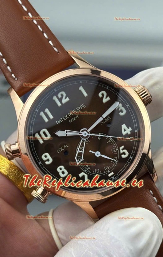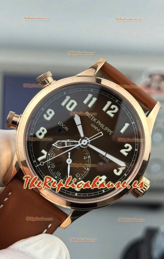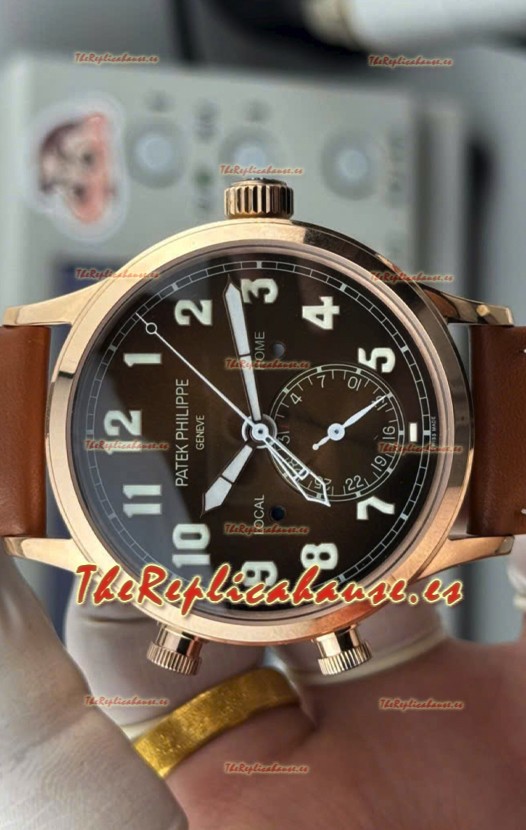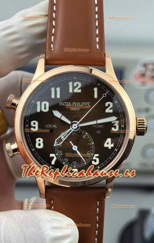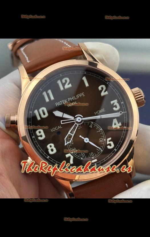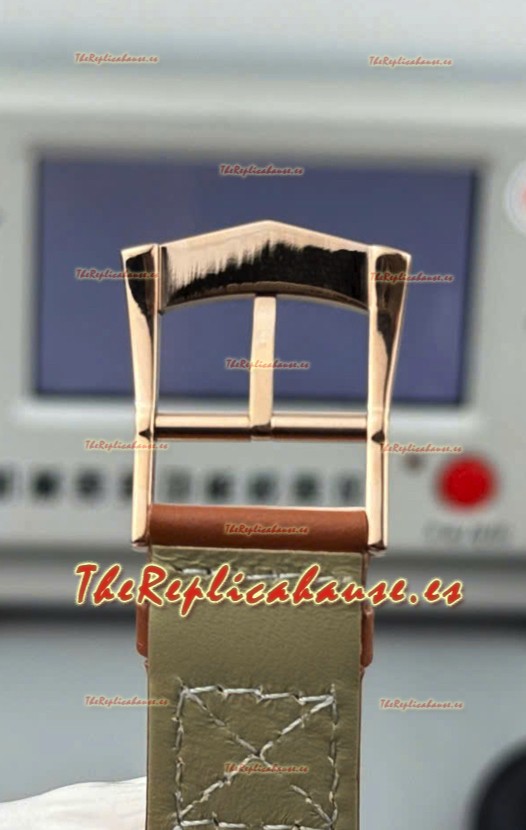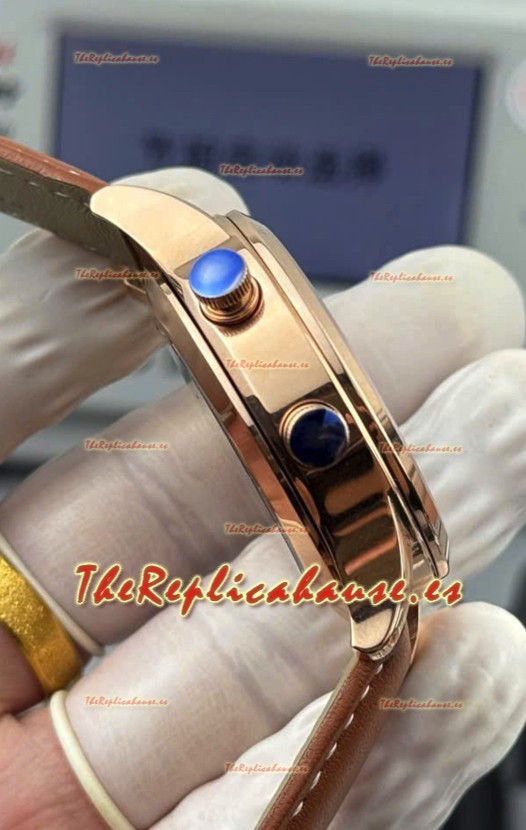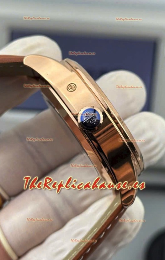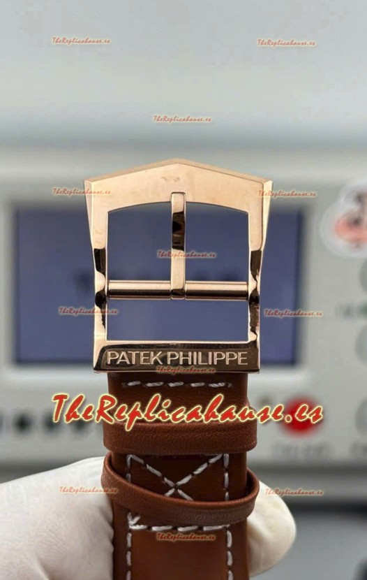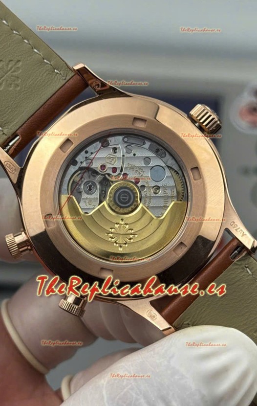 Genuino Movimiento Suizo 9015, Ensamblado para Parecerse al Movimiento Auténtico Patek Philippe PP 240 Calibre. Rotor, Puente y Grabados en el Movimiento actualizados, con Rotror chapado en Oro Rosado con el sello Patek Philippe.