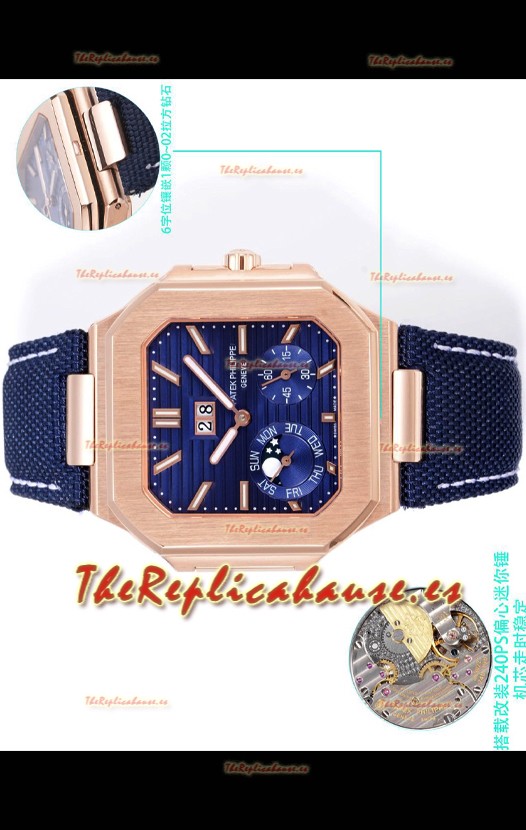 Patek Philippe Cubitus 5822 Caja Oro Rosado Dial Azul Reloj Réplica Suizo